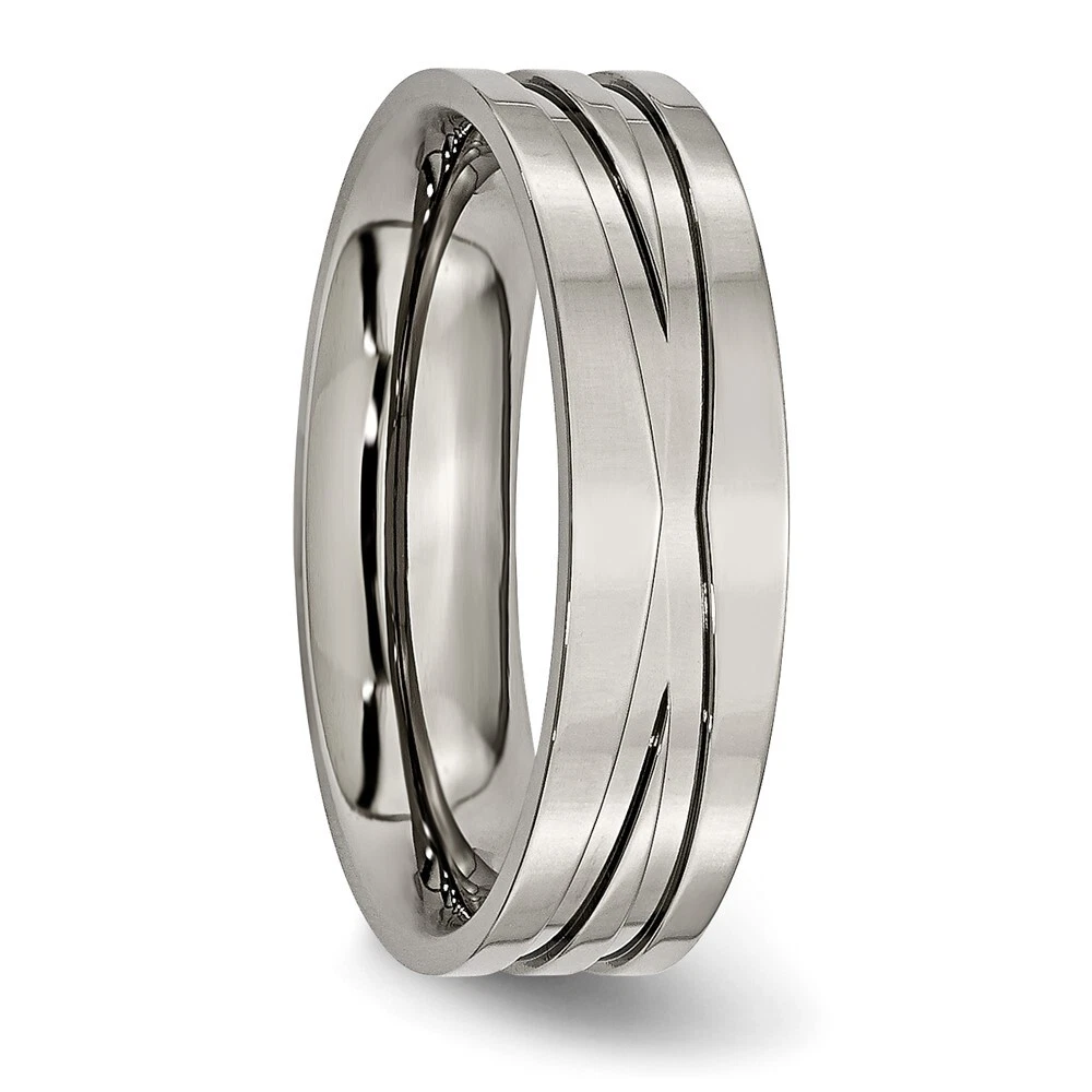Finish:Polished|Band Width:6 mm|Material: Primary:Titanium|Ring Fit:Standard|Sizeable:No|Thickness:< 2 mm|Item Weight U/M:gm|Width of Item:6 mm|Engravable:Yes|Packaging:Gift Pouch|Product Type:Jewelry|Jewelry Type:Rings|Sold By Unit:Each|Gender:Unisex|Texture:Grooved|Material: Primary - Color:Grey|Ring Type:Wedding Bands|Edge Type:Flat|Ring Shape:Flat All weights and measurements are approximate and may vary slightly from the listed information. Welcome to diamond_6720 Payments We accept all Ebay approved payment. Please sent the payment to us within 8 days after the auction has ended, or you will have unpaid case auto open by eBay. Shipping Policy We will ship all items within 1 business days of purchase during the work week (M-F) excluding holidays. If you order on Friday, your order will be shipped the following business day. Tracking will be provided when it becomes available. We will only ship to a PayPal Verified Address. Please make sure your address is current and correct. If the information does not match, your order may be canceled. Buyers are responsible for all customs, duties and taxes for your respective countries. Delivery times for International Shipping will vary. California Buyers Pay 9.0% Tax on all orders. case auto open by eBay. Return Policy & Exchange Returns or Exchange are accepted. Buyer must contact us within 30 days after the item is received. Item must be returned in unworn and resalable condition. We will only issue a refund for the purchase price, excluding any shipping fees. If we are at fault, we will provide a full refund. Buyer is responsible for all return shipping costs. BUYERS FEEDBACK If you have any concerns regarding your purchase, please contact us via eBay Message, we assure you that a satisfactory resolution will be reached. Your feedback is very important to us Do remember to give us 5 star rating(*****) if you are satisfied with our product & service .