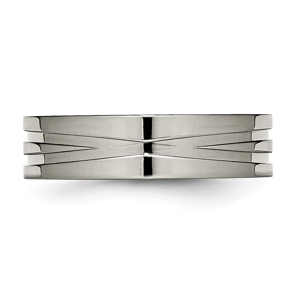 Titanium Polished X-Design 6mm Grooved Flat Band Ring Size 7