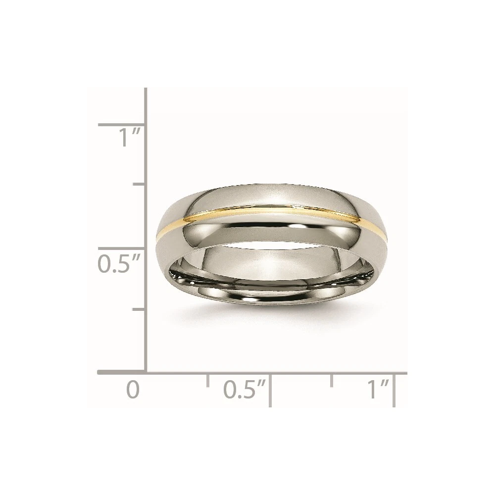 Titanium Polished Yellow IP-plated 6mm Grooved Band Ring Size 10