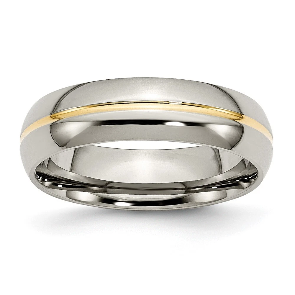 Finish:Polished|Plating:IP-Plated|Band Width:6 mm|Material: Primary:Titanium|Ring Fit:Comfort|Sizeable:No|Thickness:< 2 mm|Item Weight U/M:gm|Width of Item:6 mm|Engravable:Yes|Packaging:Gift Pouch|Product Type:Jewelry|Jewelry Type:Rings|Sold By Unit:Each|Gender:Unisex|Texture:Grooved|Material: Primary - Color:Grey|Ring Type:Wedding Bands|Plating Color:Gold Tone|Ring Shape:Domed All weights and measurements are approximate and may vary slightly from the listed information. Welcome to diamond_6720 Payments We accept all Ebay approved payment. Please sent the payment to us within 8 days after the auction has ended, or you will have unpaid case auto open by eBay. Shipping Policy We will ship all items within 1 business days of purchase during the work week (M-F) excluding holidays. If you order on Friday, your order will be shipped the following business day. Tracking will be provided when it becomes available. We will only ship to a PayPal Verified Address. Please make sure your address is current and correct. If the information does not match, your order may be canceled. Buyers are responsible for all customs, duties and taxes for your respective countries. Delivery times for International Shipping will vary. California Buyers Pay 9.0% Tax on all orders. case auto open by eBay. Return Policy & Exchange Returns or Exchange are accepted. Buyer must contact us within 30 days after the item is received. Item must be returned in unworn and resalable condition. We will only issue a refund for the purchase price, excluding any shipping fees. If we are at fault, we will provide a full refund. Buyer is responsible for all return shipping costs. BUYERS FEEDBACK If you have any concerns regarding your purchase, please contact us via eBay Message, we assure you that a satisfactory resolution will be reached. Your feedback is very important to us Do remember to give us 5 star rating(*****) if you are satisfied with our product & service .