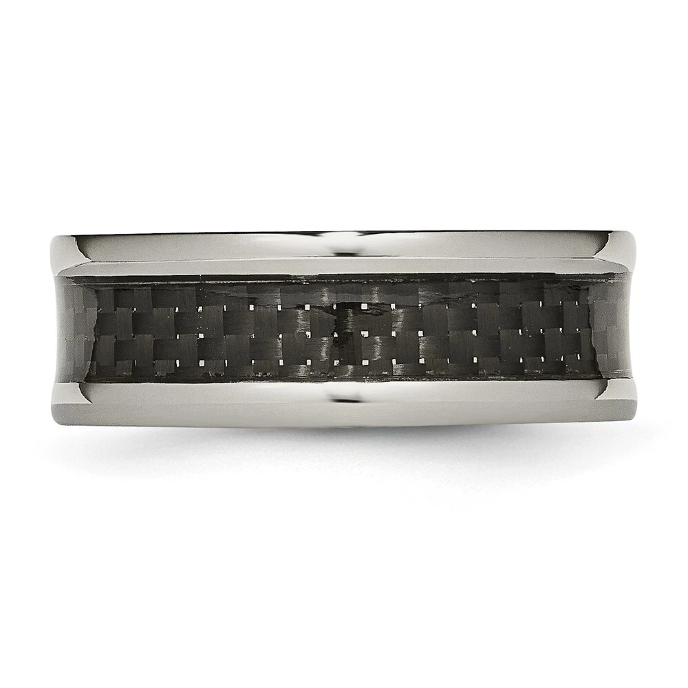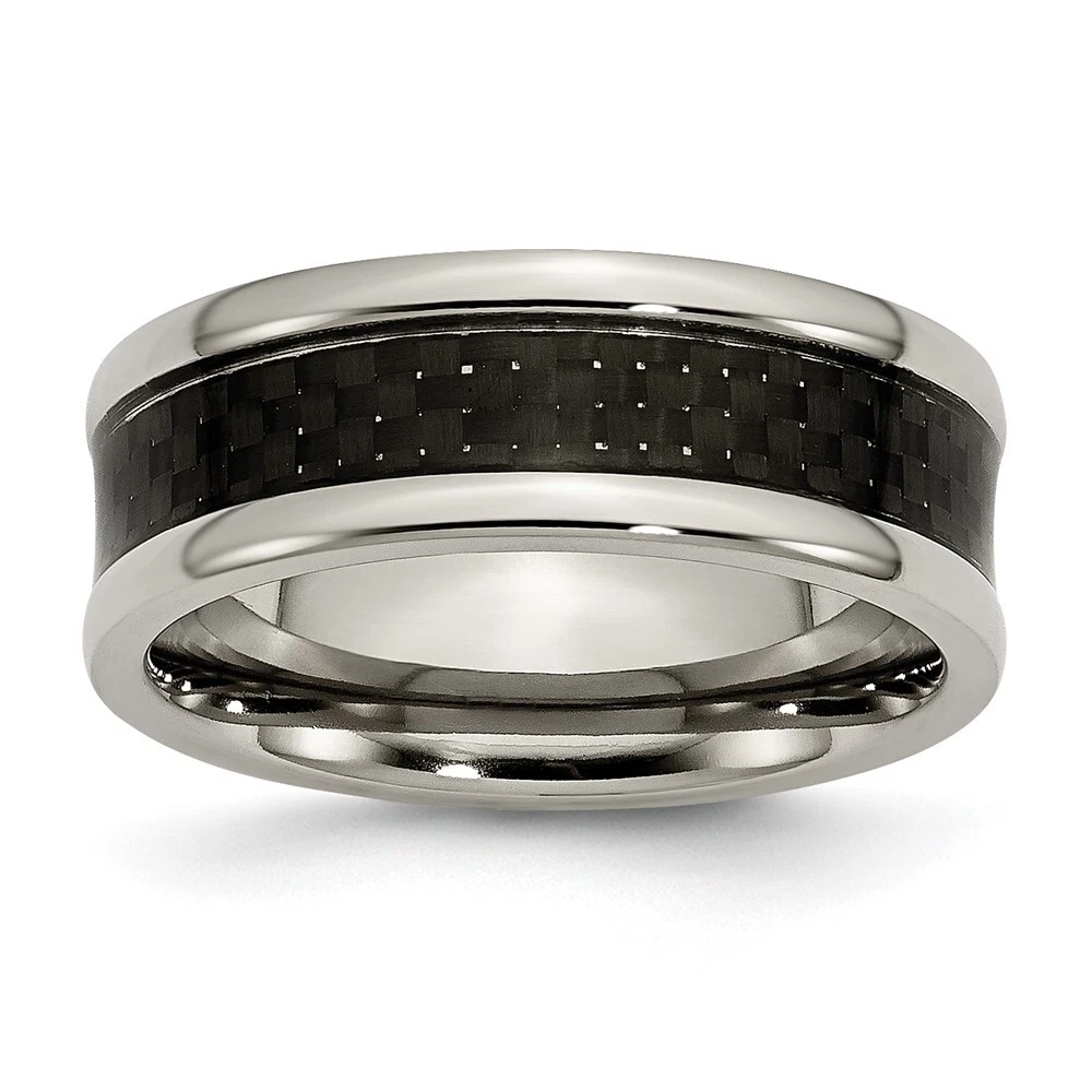 Finish:Polished|Material: Accent Color 1:Black|Band Width:8 mm|Material: Primary:Titanium|Ring Fit:Standard|Sizeable:No|Thickness:< 2 mm|Item Weight U/M:gm|Width of Item:8 mm|Engravable:Yes|Packaging:Gift Pouch|Product Type:Jewelry|Jewelry Type:Rings|Sold By Unit:Each|Gender:Unisex|Material: Inlay:Carbon Fiber|Material: Primary - Color:Grey|Ring Type:Wedding Bands|Edge Type:Rounded|Ring Shape:Concaved All weights and measurements are approximate and may vary slightly from the listed information. Welcome to diamond_6720 Payments We accept all Ebay approved payment. Please sent the payment to us within 8 days after the auction has ended, or you will have unpaid case auto open by eBay. Shipping Policy We will ship all items within 1 business days of purchase during the work week (M-F) excluding holidays. If you order on Friday, your order will be shipped the following business day. Tracking will be provided when it becomes available. We will only ship to a PayPal Verified Address. Please make sure your address is current and correct. If the information does not match, your order may be canceled. Buyers are responsible for all customs, duties and taxes for your respective countries. Delivery times for International Shipping will vary. California Buyers Pay 9.0% Tax on all orders. case auto open by eBay. Return Policy & Exchange Returns or Exchange are accepted. Buyer must contact us within 30 days after the item is received. Item must be returned in unworn and resalable condition. We will only issue a refund for the purchase price, excluding any shipping fees. If we are at fault, we will provide a full refund. Buyer is responsible for all return shipping costs. BUYERS FEEDBACK If you have any concerns regarding your purchase, please contact us via eBay Message, we assure you that a satisfactory resolution will be reached. Your feedback is very important to us Do remember to give us 5 star rating(*****) if you are satisfied with our product & service .
