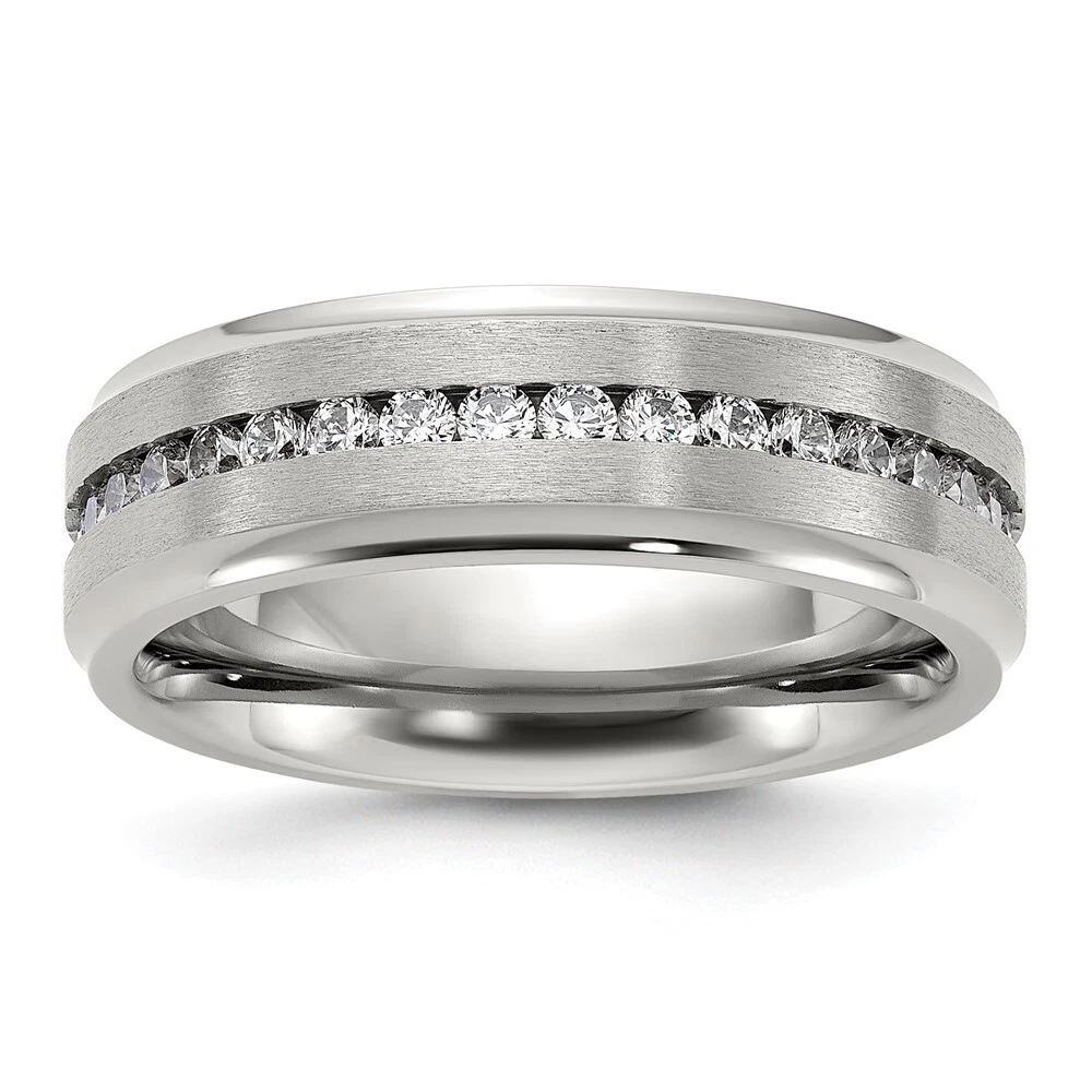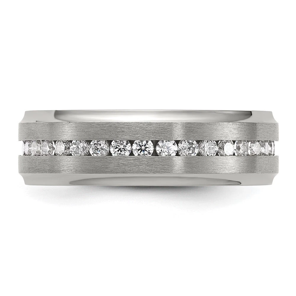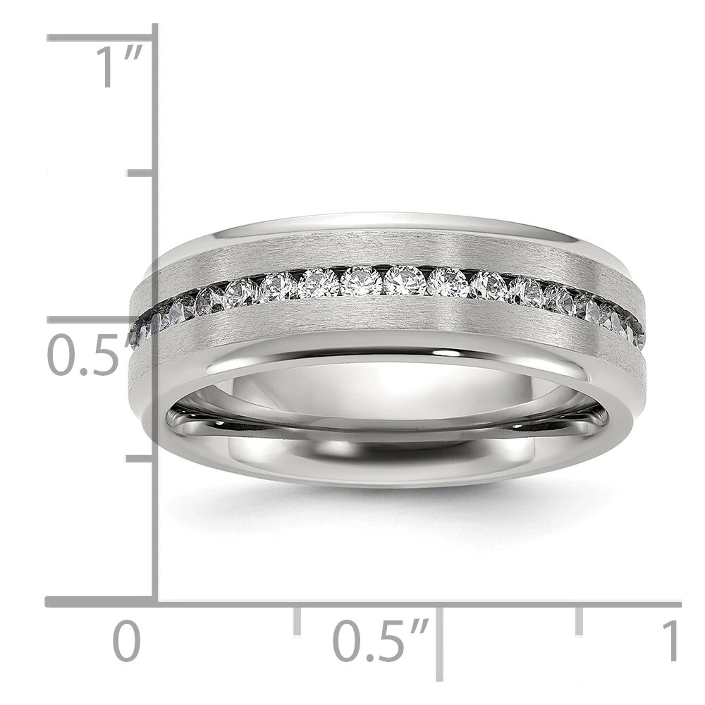 Titanium Polished with Brushed Center and Cubic Zirconia 7mm Band Ring Size 12