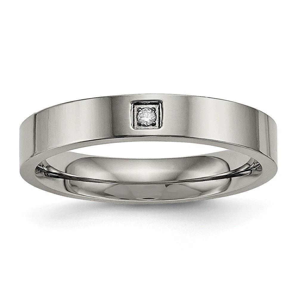 Finish:Polished|Stone Type_1:Cubic Zirconia (CZ)|Band Width:4 mm|Material: Primary:Titanium|Ring Fit:Comfort|Sizeable:No|Stone Treatment_1:Synthetic|Item Weight U/M:gm|Width of Item:4 mm|Engravable:Yes|Packaging:Gift Pouch|Product Type:Jewelry|Jewelry Type:Rings|Sold By Unit:Each|Gender:Unisex|Material: Primary - Color:Grey|Ring Type:Wedding Bands|Edge Type:Flat|Stone Creation Method_1:Synthetic|Ring Shape:Flat All weights and measurements are approximate and may vary slightly from the listed information. Welcome to diamond_6720 Payments We accept all Ebay approved payment. Please sent the payment to us within 8 days after the auction has ended, or you will have unpaid case auto open by eBay. Shipping Policy We will ship all items within 1 business days of purchase during the work week (M-F) excluding holidays. If you order on Friday, your order will be shipped the following business day. Tracking will be provided when it becomes available. We will only ship to a PayPal Verified Address. Please make sure your address is current and correct. If the information does not match, your order may be canceled. Buyers are responsible for all customs, duties and taxes for your respective countries. Delivery times for International Shipping will vary. California Buyers Pay 9.0% Tax on all orders. case auto open by eBay. Return Policy & Exchange Returns or Exchange are accepted. Buyer must contact us within 30 days after the item is received. Item must be returned in unworn and resalable condition. We will only issue a refund for the purchase price, excluding any shipping fees. If we are at fault, we will provide a full refund. Buyer is responsible for all return shipping costs. BUYERS FEEDBACK If you have any concerns regarding your purchase, please contact us via eBay Message, we assure you that a satisfactory resolution will be reached. Your feedback is very important to us Do remember to give us 5 star rating(*****) if you are satisfied with our product & service .