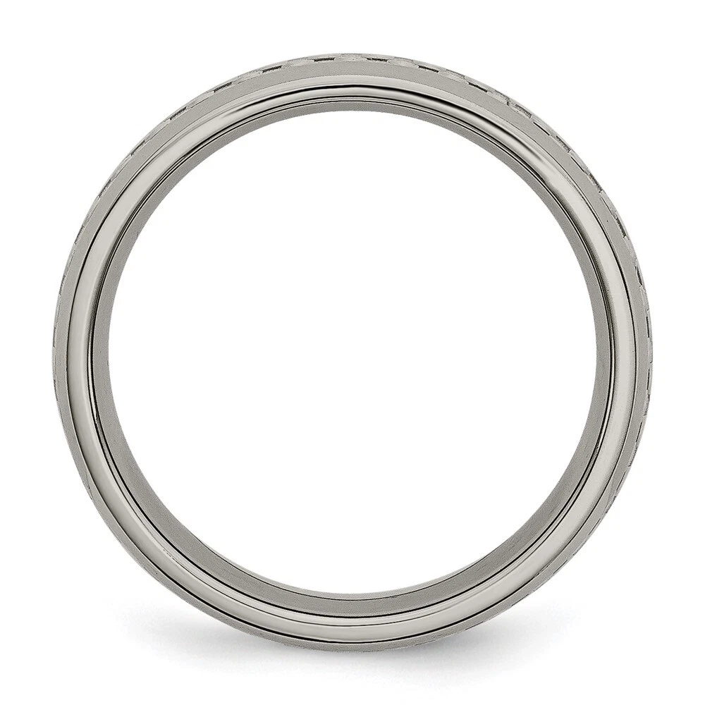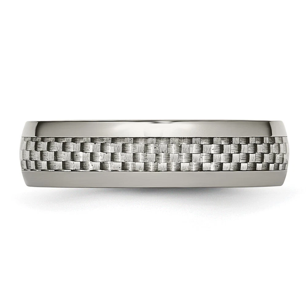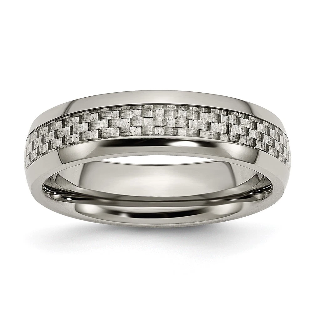 Titanium Polished with Grey Carbon Fiber Inlay 6mm Band Ring Size 8