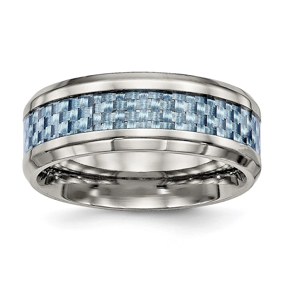 Finish:Polished|Material: Accent Color 1:Blue|Band Width:8 mm|Material: Primary:Titanium|Ring Fit:Comfort|Sizeable:No|Thickness:< 2.5 mm|Item Weight U/M:gm|Width of Item:8 mm|Engravable:Yes|Packaging:Gift Pouch|Product Type:Jewelry|Jewelry Type:Rings|Sold By Unit:Each|Gender:Unisex|Material: Inlay:Carbon Fiber|Material: Primary - Color:Grey|Ring Type:Wedding Bands|Edge Type:Beveled|Ring Shape:Flat All weights and measurements are approximate and may vary slightly from the listed information. Welcome to diamond_6720 Payments We accept all Ebay approved payment. Please sent the payment to us within 8 days after the auction has ended, or you will have unpaid case auto open by eBay. Shipping Policy We will ship all items within 1 business days of purchase during the work week (M-F) excluding holidays. If you order on Friday, your order will be shipped the following business day. Tracking will be provided when it becomes available. We will only ship to a PayPal Verified Address. Please make sure your address is current and correct. If the information does not match, your order may be canceled. Buyers are responsible for all customs, duties and taxes for your respective countries. Delivery times for International Shipping will vary. California Buyers Pay 9.0% Tax on all orders. case auto open by eBay. Return Policy & Exchange Returns or Exchange are accepted. Buyer must contact us within 30 days after the item is received. Item must be returned in unworn and resalable condition. We will only issue a refund for the purchase price, excluding any shipping fees. If we are at fault, we will provide a full refund. Buyer is responsible for all return shipping costs. BUYERS FEEDBACK If you have any concerns regarding your purchase, please contact us via eBay Message, we assure you that a satisfactory resolution will be reached. Your feedback is very important to us Do remember to give us 5 star rating(*****) if you are satisfied with our product & service .