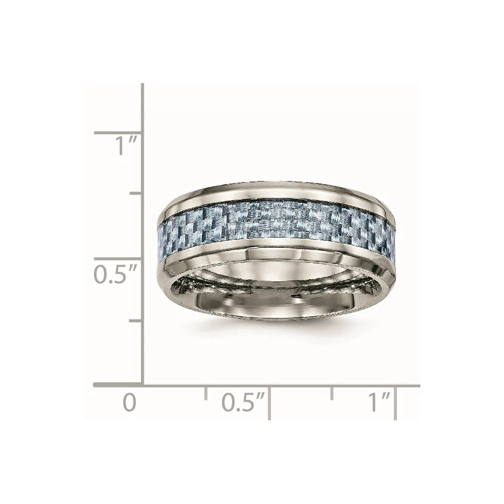 Titanium Polished with Light Blue Carbon Fiber Inlay 8mm Band Ring Size 8