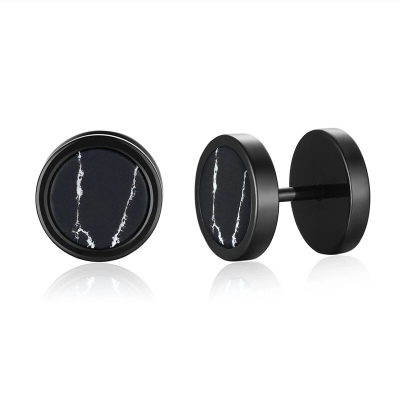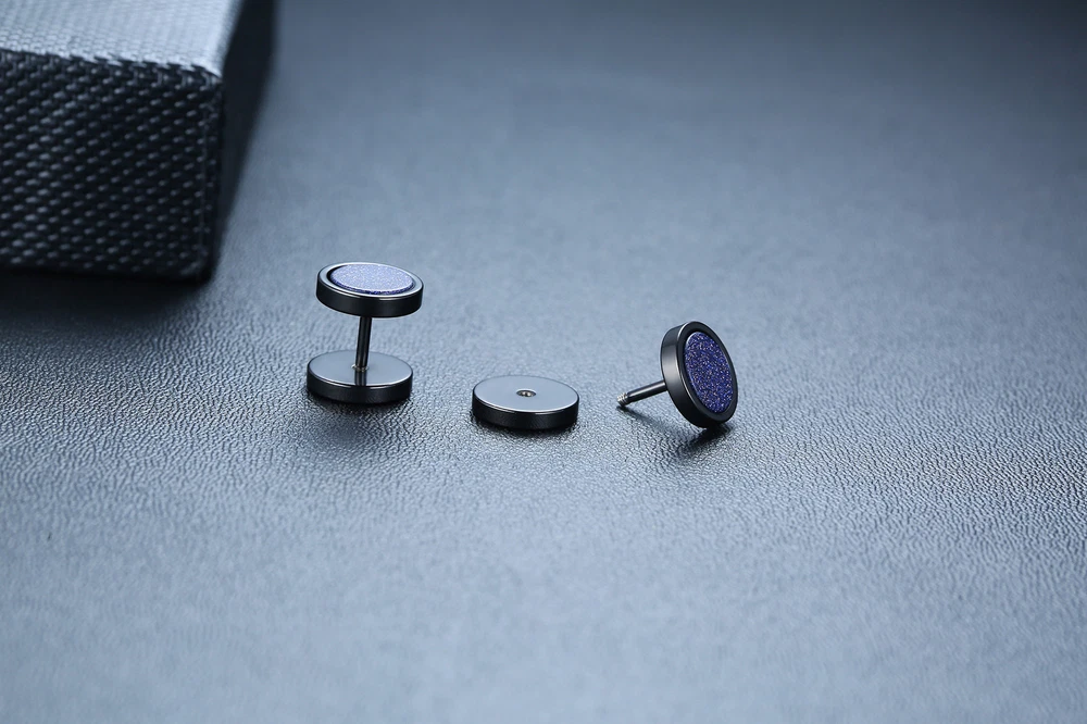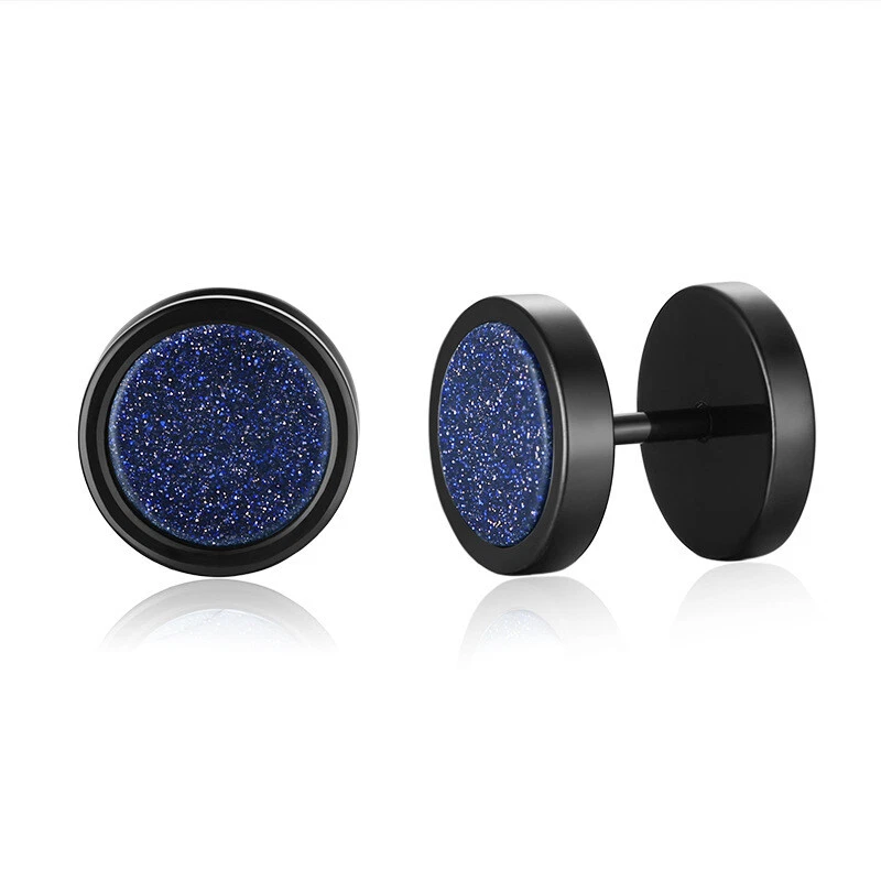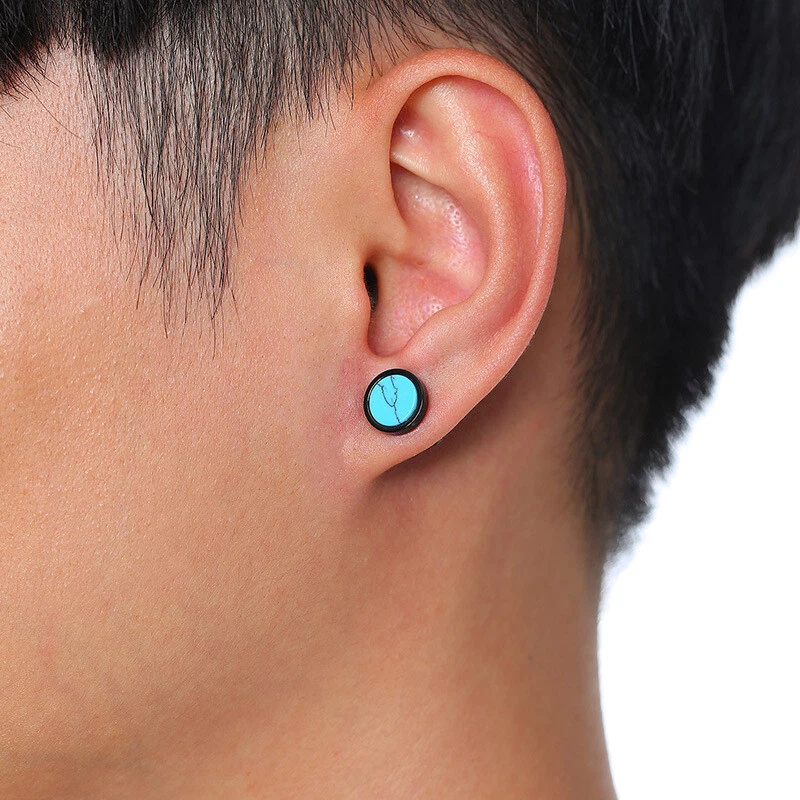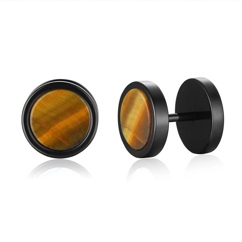 Titanium Steel Men's Turquoise Tiger Eye Stone Blue Sandstone Dumbbell Earrings