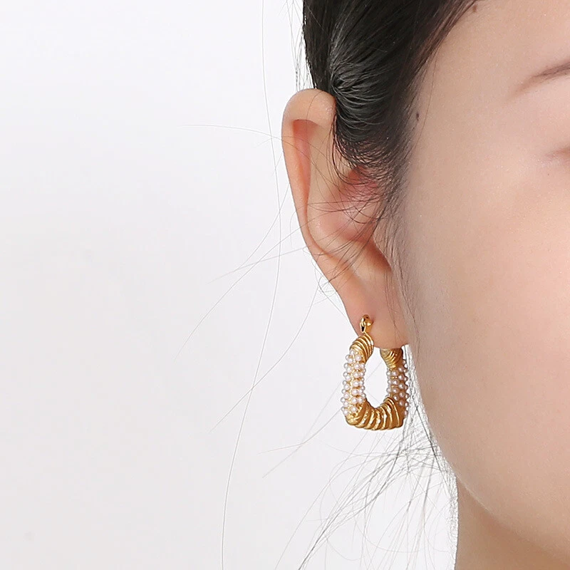 Cloisonne Diancui Palace Museum Butterfly Love Flower Gold Inlaid Pearl Earrings