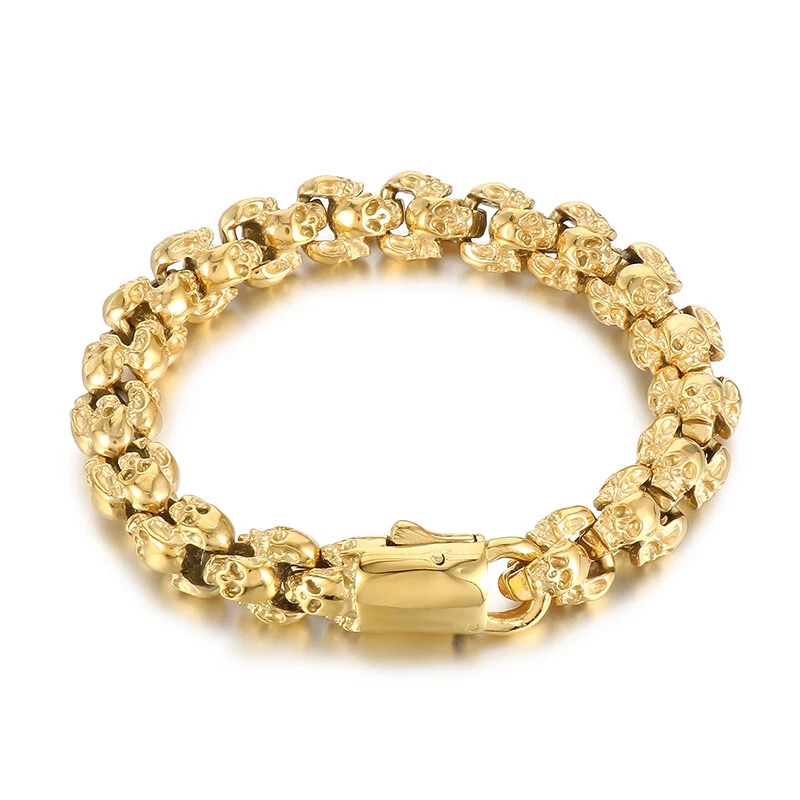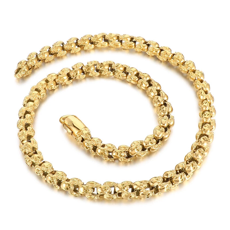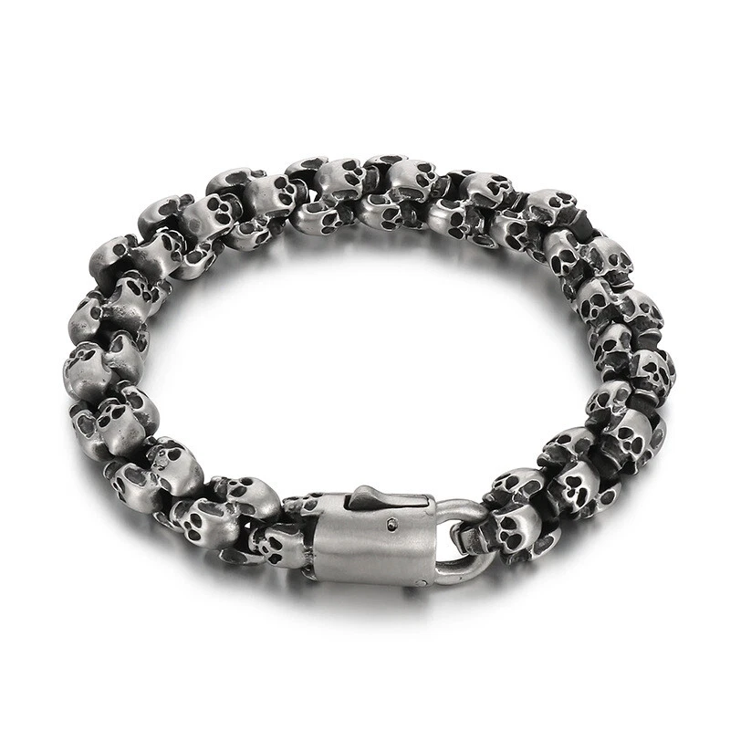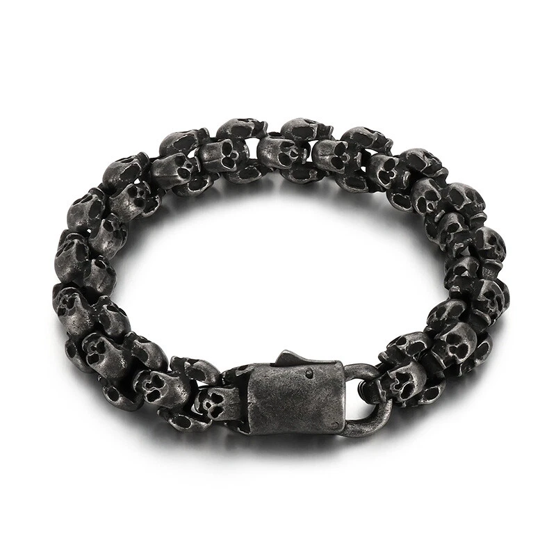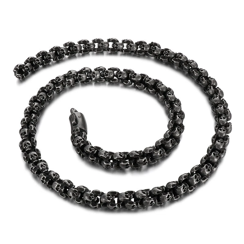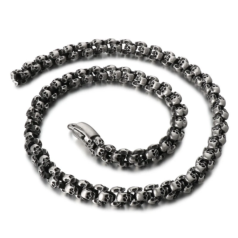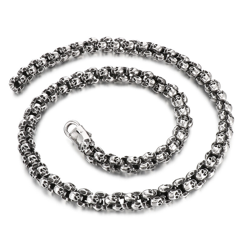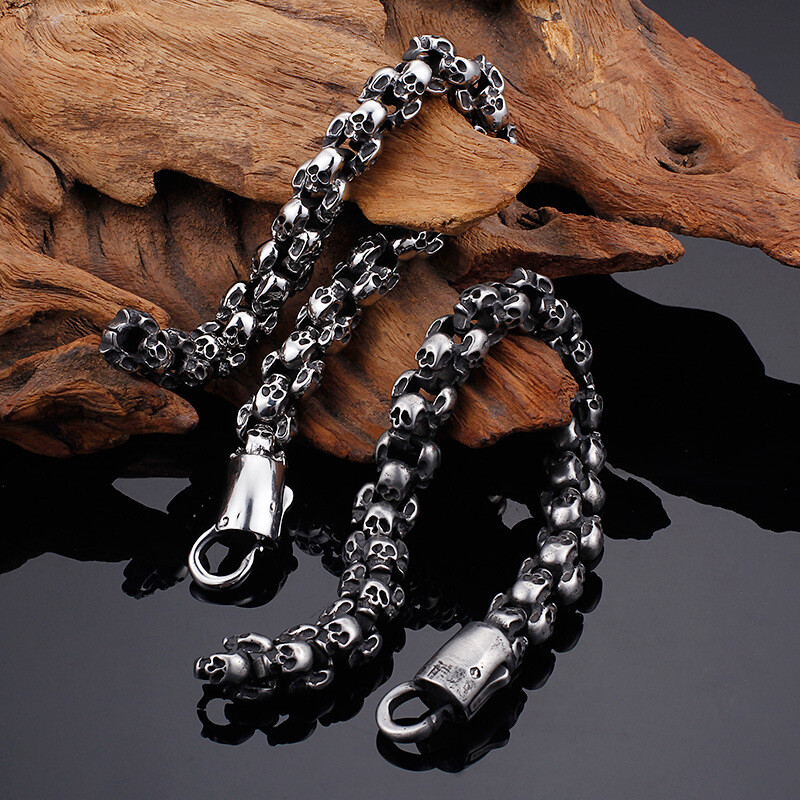 Titanium steel vintage skull bracelet and necklace set for men