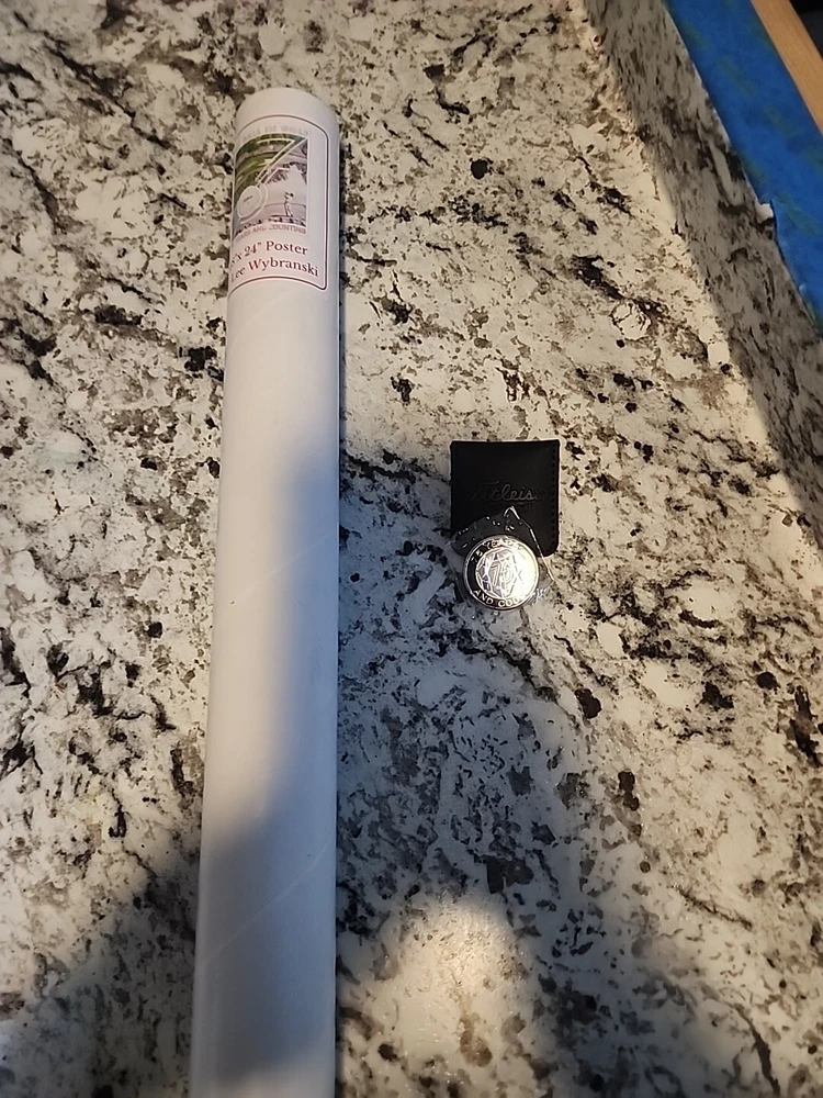 This Titleist Lee Wybranski Framed Poster & Ball Marker celebrates the 75th anniversary of the US Open as the number one ball in golf. The poster measures 18 x 24 inches and features a stunning design by Lee Wybranski. The ball marker is also included, making it a perfect addition to any golfer's collection. The item is brand new and proudly made in the United States. Ideal for fans of golf and sports memorabilia collectors.