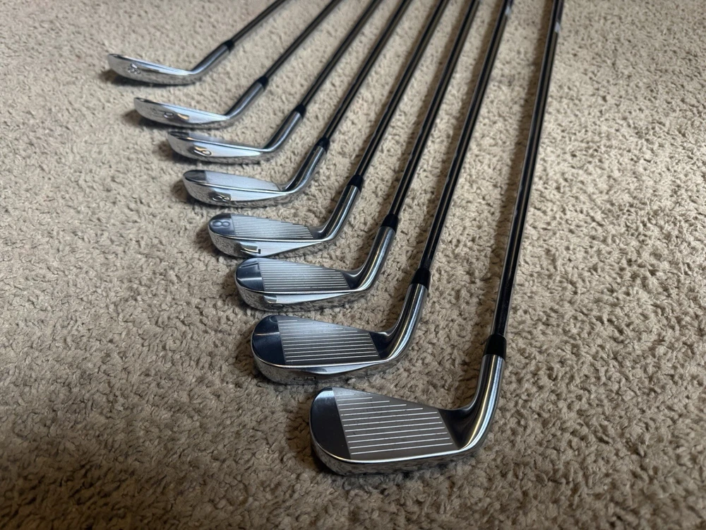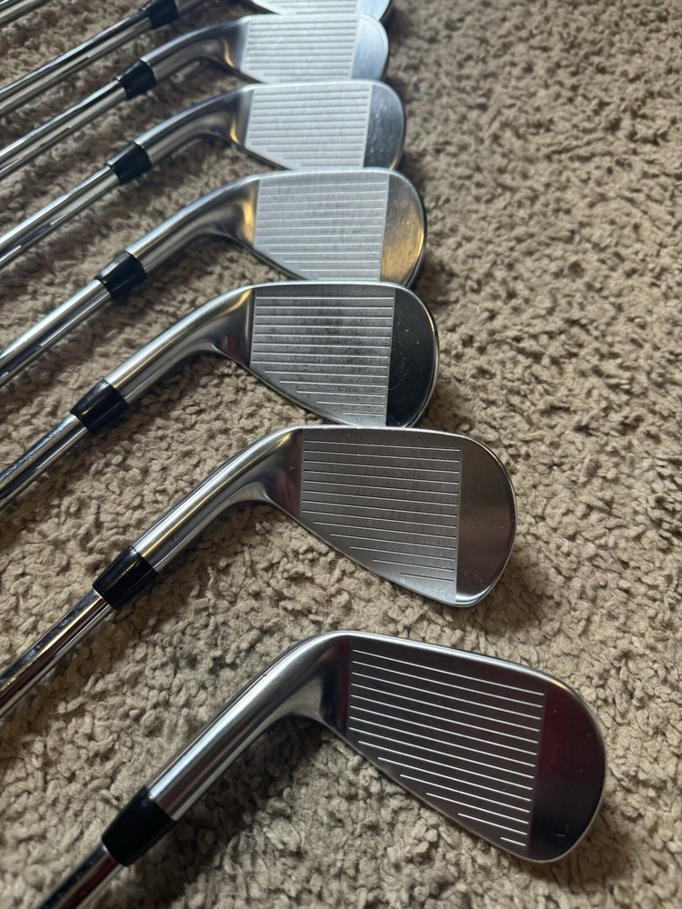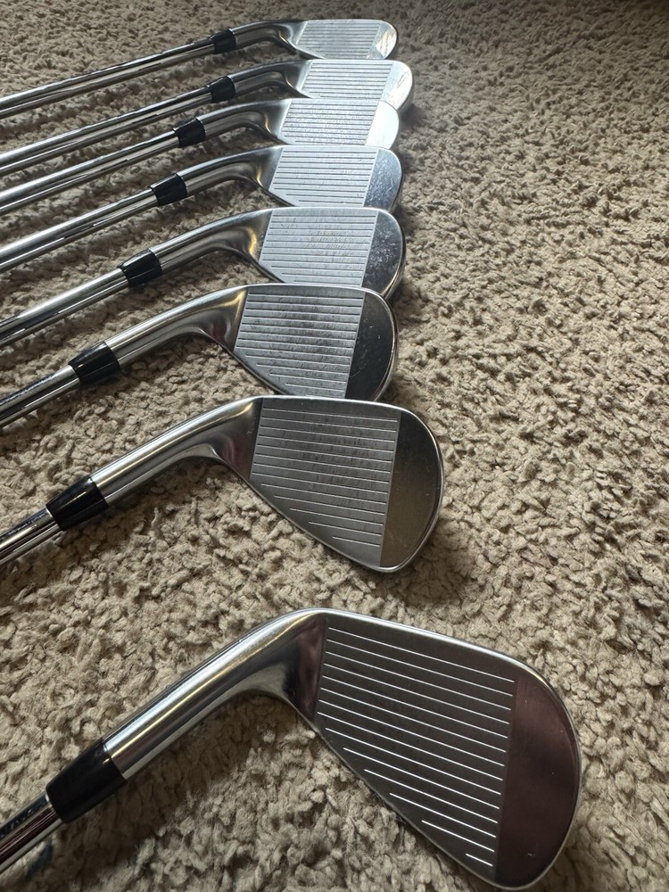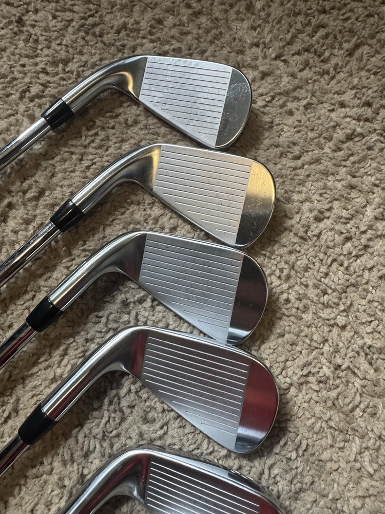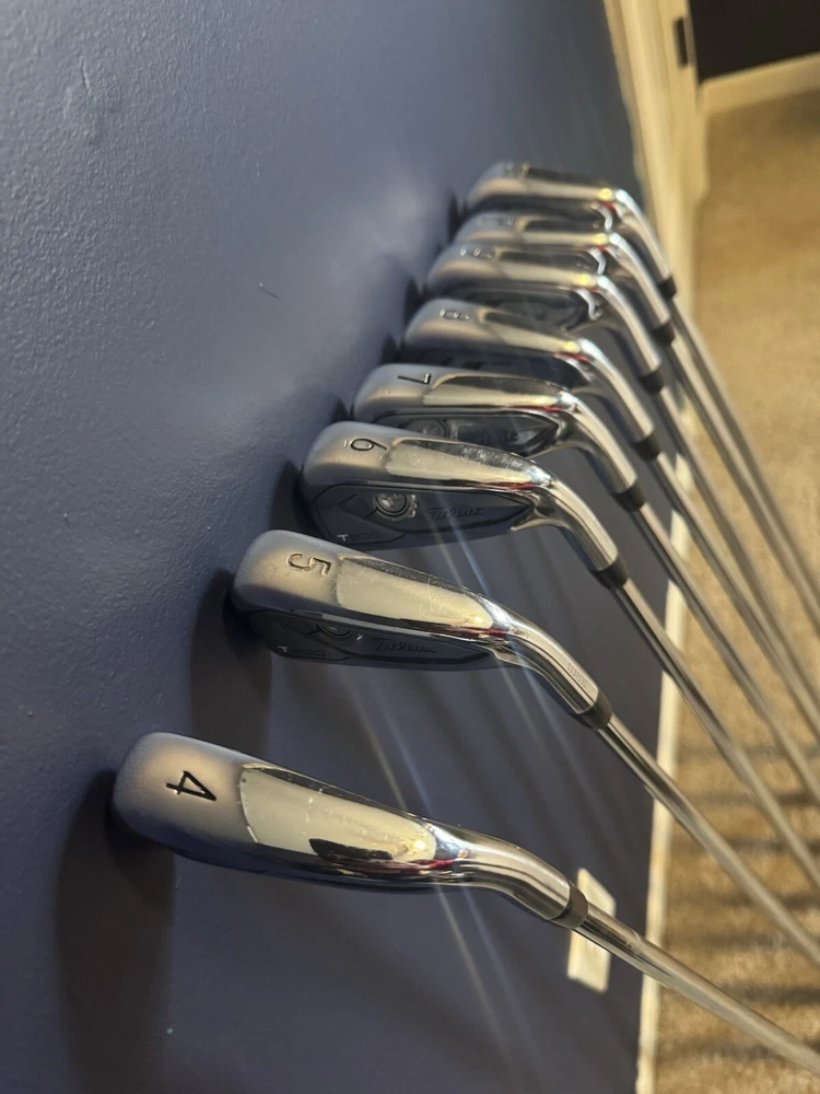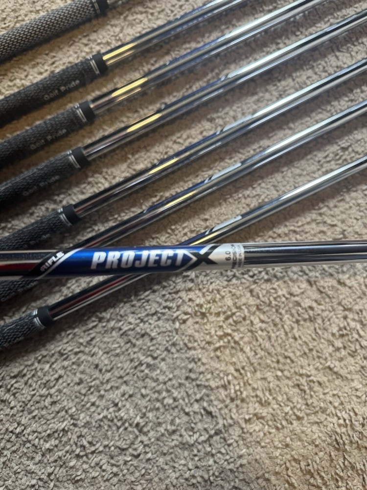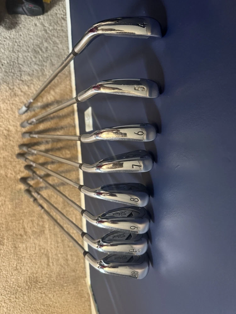 Lightly Used Titleist T200 Irons with Steel shafts, Stiff flex, and a 4-Gap Wedge set. These Right-Handed irons are designed for golfers looking for precision and distance on the course. The set includes clubs ranging from 4 iron to gap wedge. All in like new condition as they’ve only been used for one season. All clubs are standard lie and loft angles, as well as, standard length. The 4-iron and GW have original Golf Pride Tour Velvet grips while the rest have Golf Pride full cord grips. I play without a glove and didn’t use the GW or 4-iron a ton so never changed those grips out. All shafts are Project X 6.0 Rifle Shaft so they would be your standard stiff flex.