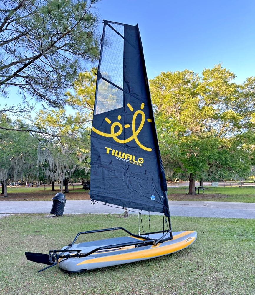 The Tiwal 3 is a cheeky sailboat! Transported in two 62 lbs bags, it’s easily movable and assembles in 20 minutes! Equipped like great ones, this 10′ 6″ sailing dinghy is performing, comfy, and secure. It suits both adults and kids, allows single or double handed sailing, wherever you want! The reefable pack offers the largest sailing range, and adapts to the whole family needs.| The Tiwal 3 sails are made by North Sails, a leading sailmaking company. Its sails have a square top shape, offering more power for the same mast height. Most recent creation, the reefable sail combines all of its cousins qualities in a single sail, plus the flexibility.