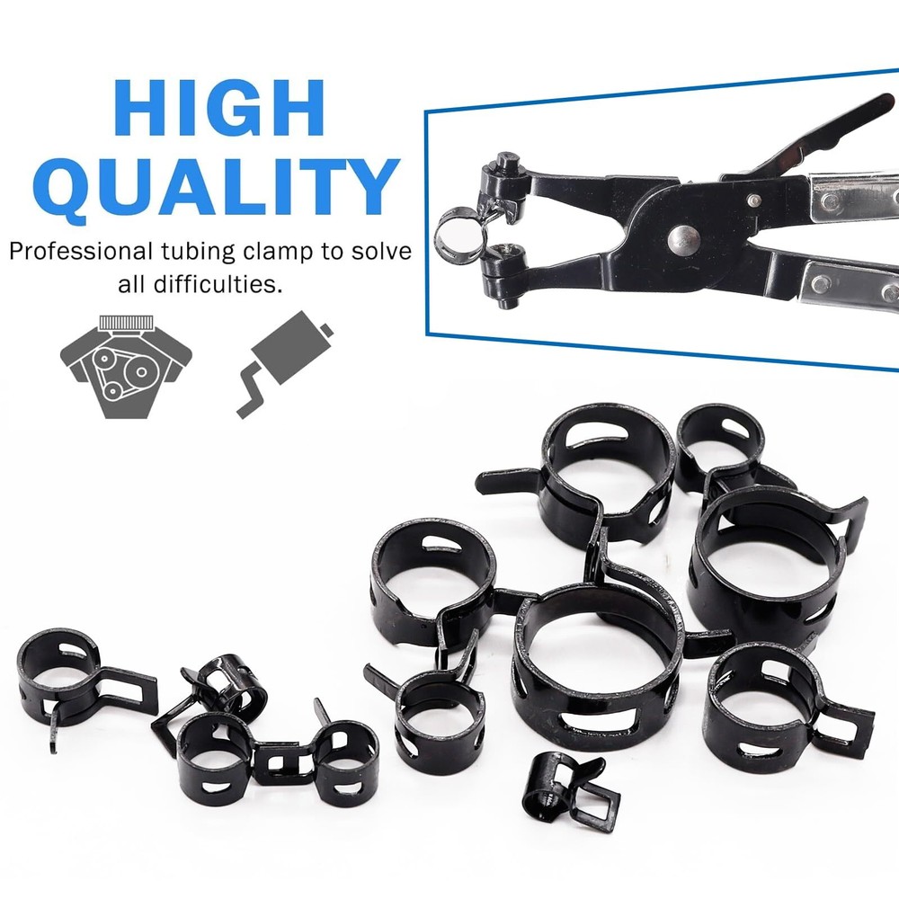 Tnisesm 132Pcs 6-25MM Spring Hose Clamps with Hose Clamp Pliers, Black Small Hose Clamps Automotive Fuel Hose Clamp Silicone Vacuum Hose Pipe Low Pressure Air Clip Clamp Various Styles Are Available: Spring Clamps Include 16 different diameters clamps to adapt to different hoses: 6mm, 7mm, 8mm, 9mm, 10mm, 11mm, 12mm, 13mm, 14mm, 15mm, 16mm, 18mm, 19mm 20mm, 22mm, 25mm.Come with a plastic storage box has classification figure inside, could facilitate your storage and classification size Tight & Strong: Made of premium 65Mn spring steel, durable in use and have a long serving time.nice construction and hold very well Protect Hose & Prevent Leakage: 360 Degree Inner Ring Precision Design, prevent damage to the pipeline effectively;fuel line hose clamp can ensure a reliable and leak-proof connection between the hose and the joint, and is very suitable for connecting the hose to the joint to prevent flow leakage Wide Application: Spring Hose Clamps are used in a wide range of applications, suitable for fuel lines/vacuum hoses/gas pipe/air hose/water pipe/silicone hose, great choose for garage, boats, motorcycles, lawn and car engines connection, etc Easy to use: equipped with professional swivel flat hose clamp Plier, you can grasp the clamp and rotary joint for multi-angle entry only by grasping the hand Shipping We offer FREE shipping on all orders! We ship within Three business days of payment, usually sooner. We use a selection of shipping services such as UPS, FedEx, USPS etc. We only ship to the lower 48 states, no APO/FPO addresses or PO Boxes allowed. Local pickups and combined shipping options are not provided at this time. Return You can return a product for up to 30 days from the date you purchased it. Any product you return must be in the same condition you received it and in the original packaging. Please keep the receipt. Payment We accept payment by any of the following methods: PayPal Please pay as soon as possible after winning an auction, as that will allow us to post your item to you sooner! Feedback Customer satisfaction is very important to us. If you have any problem with your order, please contact us and we will do our best to make you satisfied. Contact Us If you have any queries, please contact us via ebay. We usually respond within 24 hours on weekdays. Please visit our eBay store to check out other items for sale! Thank you for shopping at our store.