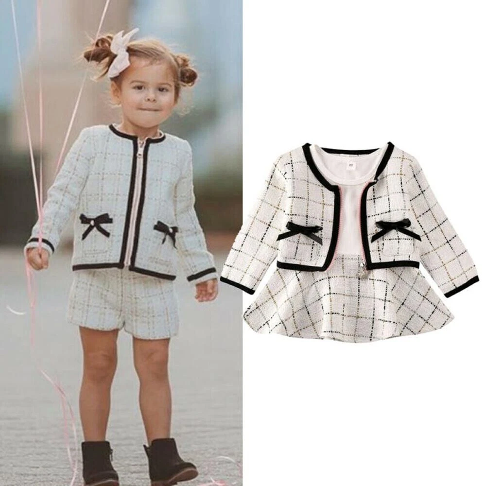 Description Features: Condition: 100% Brand New Material: Cotton Blend Style:Casual Pattern Type:Plaid Collar Type:Round Neck Sleeve Length:Long Sleeve Sleeve Type: Regular Occasion: Casual, Everyday, Party Size chart: Recommend Age Top Length CM Top Length Inch Bust CM Bust Inch Skirt Length CM Skirt Length Inch 6-12 Months 25 9.84 52 20.48 33 12.99 1-2 Years 26 10.24 54 21.26 35 13.78 2-3 Years 27 10.63 56 22.04 37 14.57 3-4 Years 28 11.02 58 22.84 39 15.35 4-5 Years 29 11.42 60 23.12 41 16.14 Package Content: 1 x Coats 1 x Dress NOTE: 1.Please compare the detail sizes with yours before you buy!!! 2.Colors may be slightly different depending on computer and monitor settings 3.Please allow 1-3cm differs due to manual measurement, thanks (All measurement in cm and please note 1cm=0.39inch) Thanks for your understanding. Detail Image Delivery Time: USA To USA: shipped by USPS, 2-4 working days UK&AU To UK&AU: shipped by Royal Mail , 1-3 working days China To USA: shipped by China Post Epacket, 7-15 working days China To UK&AU: shipped by China Post Epacket, 15-25 working days China To Other Countries: shipped by China Post Epacket, 25-35 working days Shipments & Payment: Your order will be handled within 1-2 business days after receiving your clear payment. Weekend excluded Tracking number will be provided for you ASAP. We accept PayPal. Return Policy: If you are not satisfied with the items, you can return for refund within 30 days after receives it. Buyer pay the shipping cost for return. contact me for the return address, we will refund your money within 2 days after receive the returned items. About Feedback: I appreciate your Positive comment and 5 star DSR(Detailed Seller Ratings) if you are satisfied with the items and my job, I will do better because of your encouragement. Also I will leave Positive feedback to you once I receive yours, thank you very much! Please do Not leave Neutral or Negative feedback and low DSR if you are not happy with the transaction, I think most problems can be resolved through sincere communication. We try our best to reply to your emails ASAP. However, due to high volume of daily incoming emails and time zone difference, we may not be able to reply your emails immediately. Please allow 1-2 business day for us to reponse. Please feel free to contact me if you have any question, I'll try my best to solve it for you.