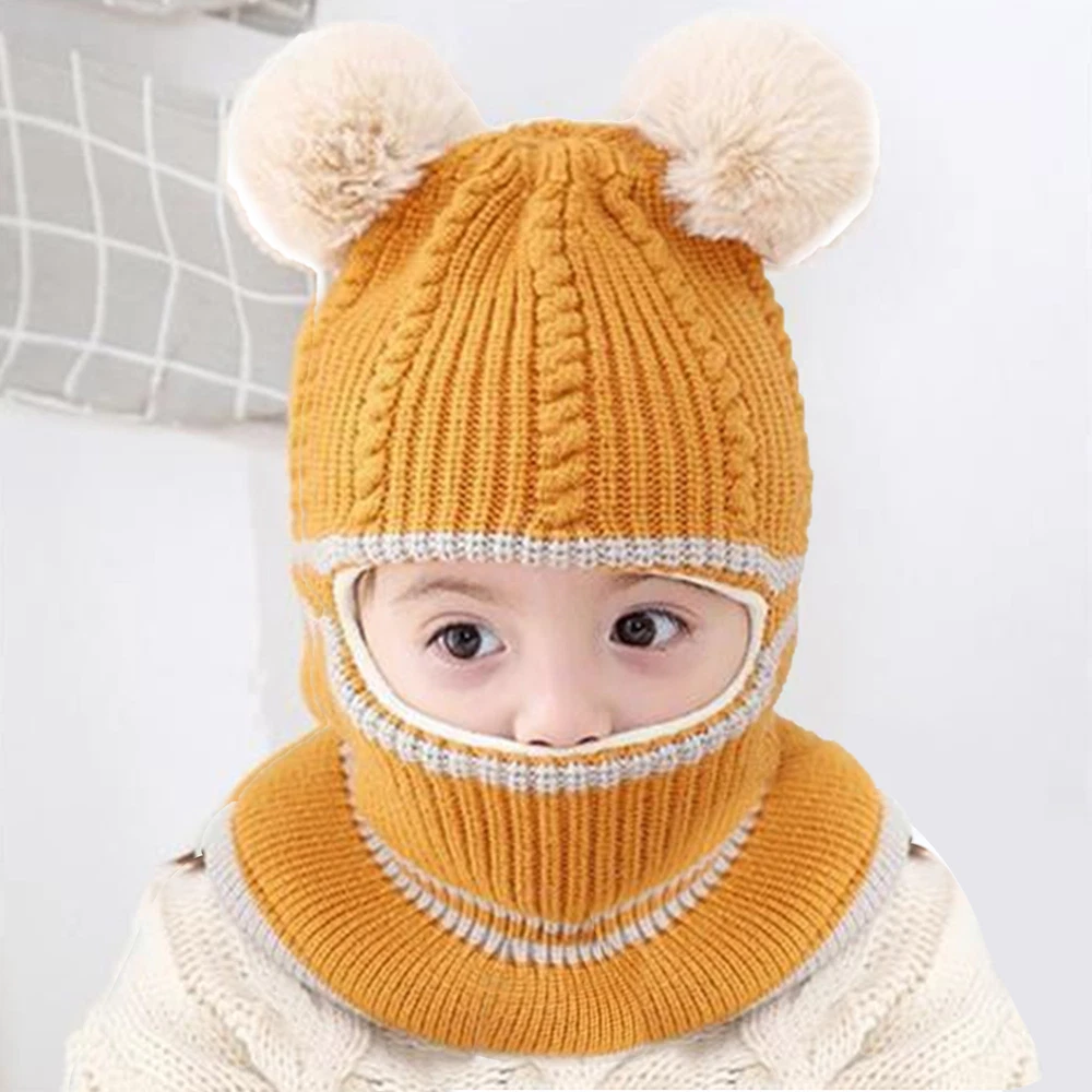 $ 4.75Baby Double Pom Pom Hat 2 Bobble Beanie Knitted Winter Warm Boy Girl Newborn Hat