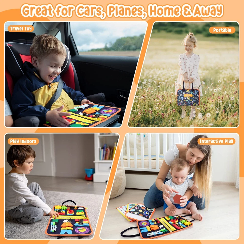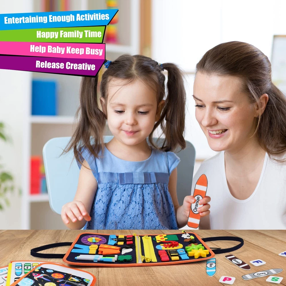 Toddler Busy Board, Montessori Busy Board for Toddlers 3+ Years Old, Sensory Activity Board for Fine Motor Skills, Sensory Board Toys for Toddlers, Educational Preschool Toys for Girls Boys Gift Montessori Busy Board for Toddlers 3+ Years Old The rich space pattern will attract the kid’s much attention and interest. Develop kids' fine motor skills and basic life skills through play. Develop kids' enrich imagination, logical thinking, practical ability,hand-eye coordination, focusing mind,colour perception. A perfect gift for 3+ year old girls and boys such as Birthday, Christmas, Halloween, Thanksgiving, Contest prizes, new year's holiday gift for preschoolers, kindergarteners. Warm Tips: As there are some small parts in the toddler busy board, we suggest children under the age of three to play this toddler busy board under the supervision of parents. This montessori busy board should be cleaned with a wet cloth, then placed in a ventilated place to dry out (no machine wash). 👕Montessori Toys for Toddlers: The Montessori busy board is designed to keep your child busy and entertained, helping your baby learn naturally through play, including zippers, laces, buttons, belt buckles, gears, and more, develop basic life skills and fine motor skills for quiet play. 🧩Cost-effective Learning Toy: Activity board in addition to some basic life skills, it also incorporates jigsaw puzzles, color, shape, number recognition section, and a DIY write board for sensory learning. Allowing children to create independently while learning to think, perceive colors and enhance logical knowledge. Let your child develop a variety of skills, be creative and challenge himself. ✈️Portable Travel Toy: This travel busy board measures 11 x 8 inches. The lightweight handbag design of this baby busy board is a great quiet option for plane or car travel. Perfect for kids on the go, keep them busy and engage little hands and minds on the go. With it, your child will no longer be bored on the go. 💡Safe and Durable Educational Toy: The toddler busy board is made of soft felt material, with soft and rounded edges, and the inner ABS material is made flexible and durable. All parts are firmly fixed. Our Montessori board is CPC certified, tested, and approved, and every production step undergoes strict quality control to ensure your kids stay busy and safe. 💕The Perfect Gift For Toddlers: This Montessori sensory activity busy board is designed with unique patterns, a wealth of learning activities, and fun gameplay, making it an ideal gift for Children's Day, Christmas, Halloween, Birthdays or the beginning of school, etc..It will be your home educational toy. This busy toddler activity board is definitely a perfect choice!Kids under 3 years old should play under parents supervision.If you have any problem, please feel free to contact us. Shipping from the USA All of our products are shipped from the USA, ensuring quick delivery to your destination. Payment We offer the following payment methods: PayPal, credit card, bank transfer, and eBay's secure payment system. Free Shipping & Free Returns Shipping within the USA is FREE. Additionally, any return is absolutely free for you. Risk-Free Purchase You have the option to return an item within 30 days without any justification. We cover the return shipping costs! Fast Shipping We ship immediately upon receipt of payment. Generally, the package is delivered within 2-3 days in the USA. If it takes longer, we will contact you. Quality and Costs Made in Europe, USA, China No customs fees or additional charges Total satisfaction guarantee Invoice with declared VAT available upon request in .pdf format Feedback Your feedback is very important to us. After you pay for your purchase, you will automatically receive positive feedback from us.