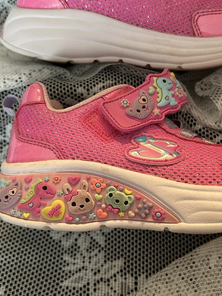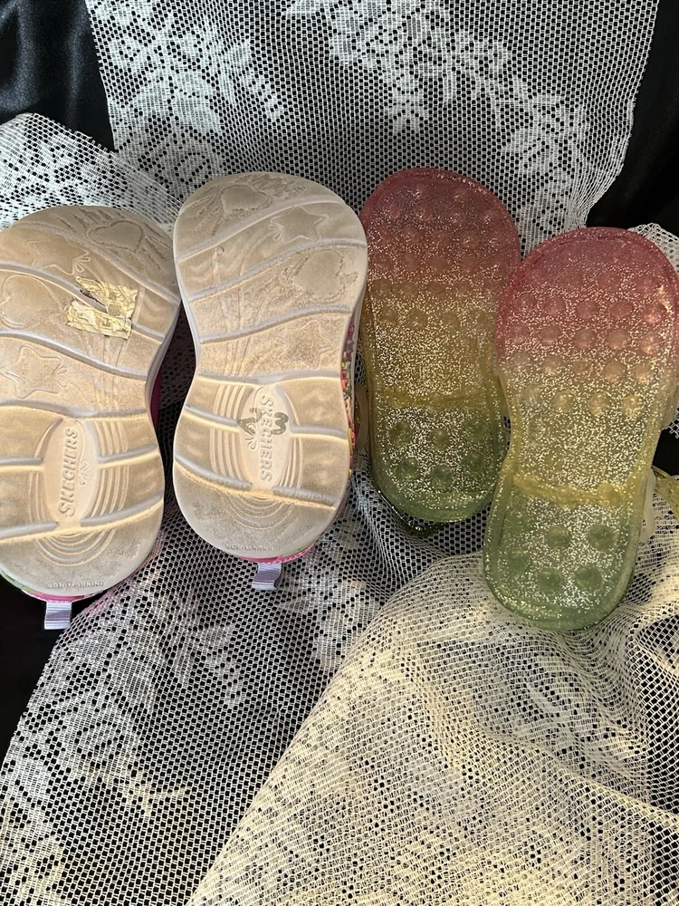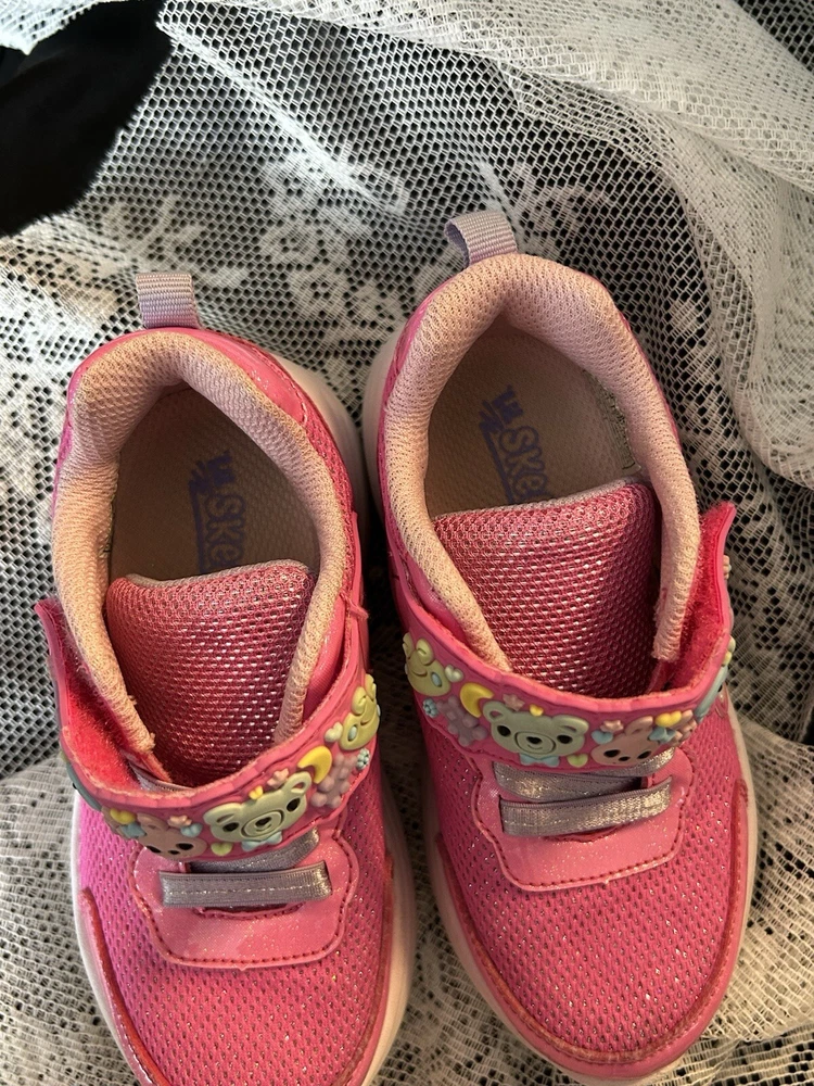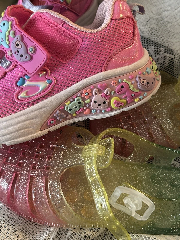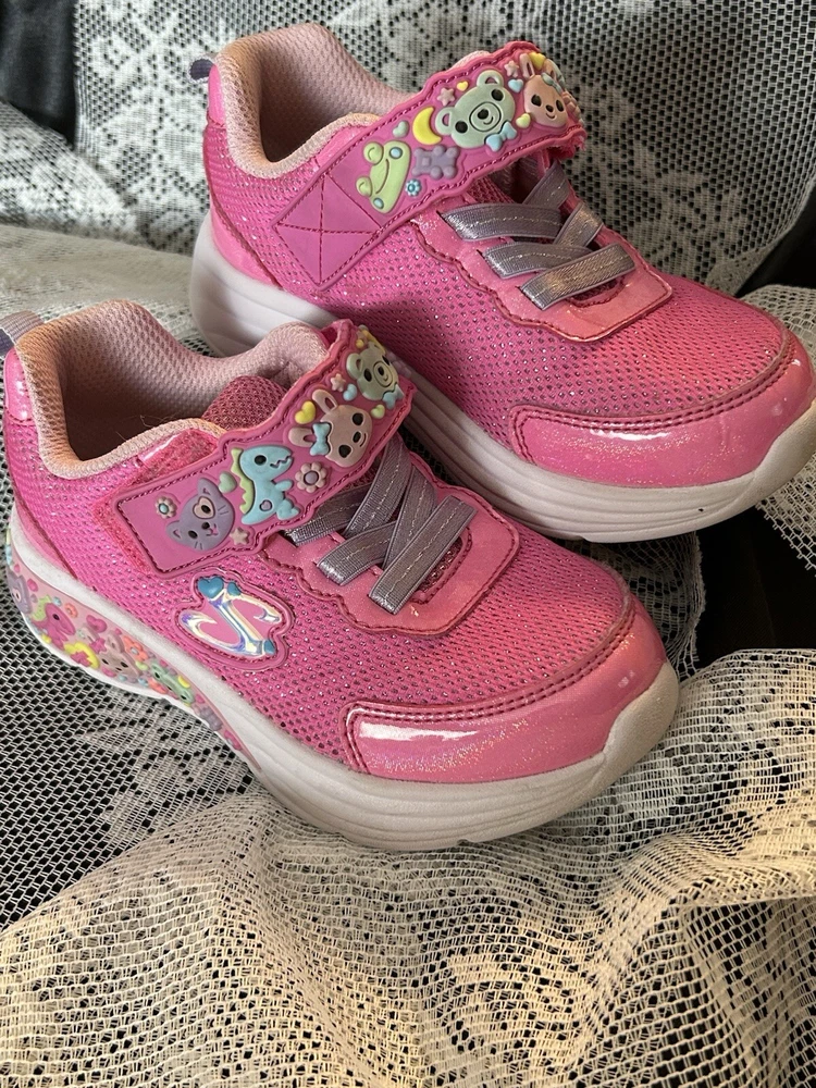 Smoke free extras from Grandma’s house. The Toddler Girl Shoes by Sketchers are cute and playful Lil' Sketchers sneakers in a mixed lot of 2 pairs in size 9. They feature cute animal characters, pink color, glitter accents, slip-resistant soles, adjustable straps, and reflective details. Ideal for travel, church, school, playtime, casual wear, and activewear, these lightweight and breathable sneakers are perfect for little girls on the go.