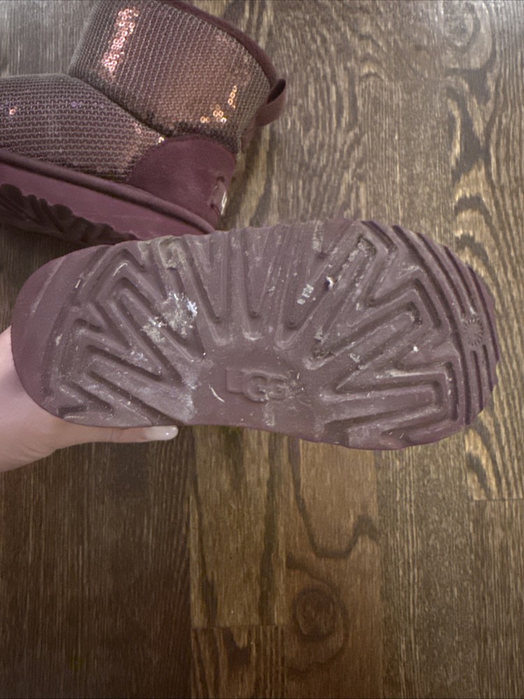 Toddler Ugg boots Maroon / sequin Good used condition, signs of wear shown Size 10 - no visible tag