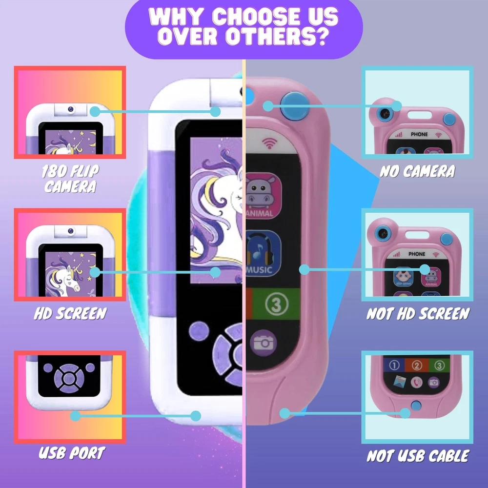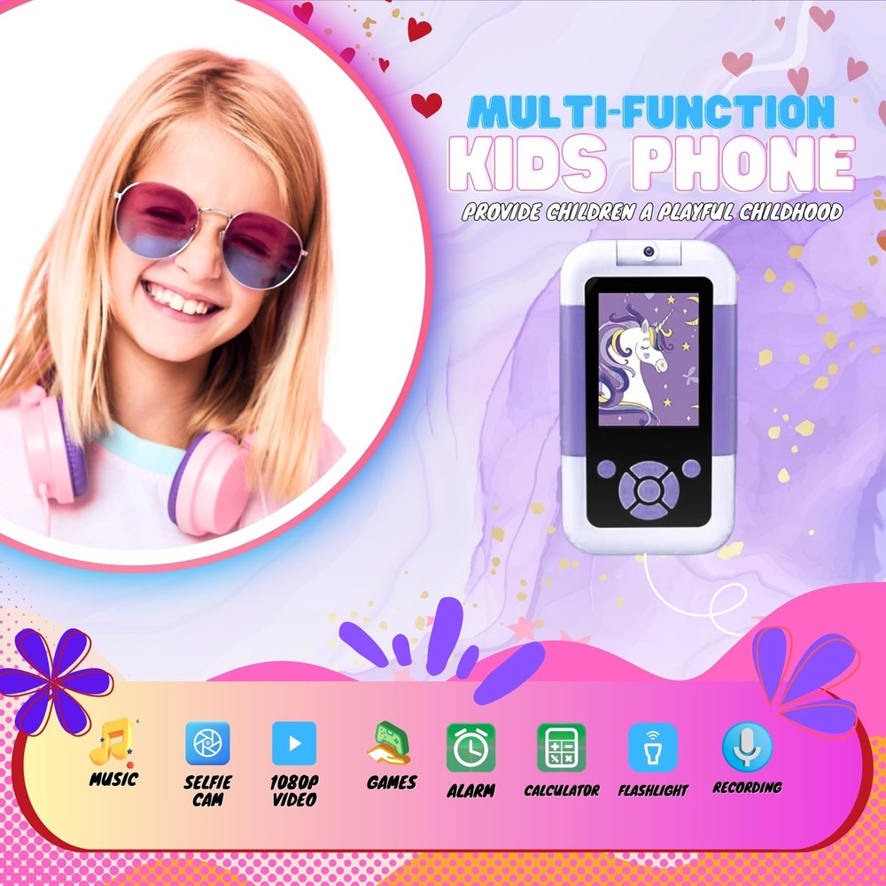 Thoughtful Gift for Kids Ages 3-6 Kids like taking selfies, videos, and large storage to meet their curiosities. This toddler with camera can thousands of photos, and kids can recall everything they have recorded! At the same time, you can download music that your child likes to listen to, which helps to develop language and reasoning skills, as well as enhance your child's memory and creativity. This is a great gift during Holidays and Christmas for boys and girls ages 3, 4, 5, and 6. Alarm Clock This toddler cell 3 year old can teach kids to follow a schedule and develop autonomy by setting alarms to do homework, brush teeth, or go to bed. (Only set 4 alarms) Flashlight Let the child gather courage from being scared when they are in the dark. Just be careful when using the baby toy flashlight and don't point the light directly at people or animals, as it may cause eye damage. 4 Funny Puzzle Games We help establish the kids' interests in learning games that can develop children’s intelligence and exercise their ability to react and think. Notice: 1. Do not disassemble the battery. 2. Use the USB cable to connect to the computer. The toddler will display charging and the computer will read the disk. You can download photos or music. 3. For adding new music, please confirm the downloaded music is in MP3 format. 4. Our smart for kids has no capabilities, so you don’t need to buy a SIM card for this. Specifications Display Screen: 2 inch Battery Capacity: 600mAh Charging Time: 2-3 Hours Charging Cable: USB Type-C cable Support 3.5mm Headphone Jack System Languages: 20 languages are supported. e.g. English, Spanish, French, Italian, Russian, German, Portuguese, etc. KID-FRIENDLY DESIGN: Compact and lightweight, our toddler for kids is designed to spark endless creativity for the young, making it physically appealing and handy for easy hold using their small hands. EDUCATIONAL YET ENTERTAINING: Preloaded with age-appropriate features, the kid applications of our educational toys for girls and boys helps elevate playtime with the joy of music and learning. Introduce them to our little that can nurture their auditory development and spark their love for new learnings. DURABLE & SAFE MATERIALS: Built with a sturdy, shock-resistant casing to withstand accidental drops and rough handling, this kids smartphone toy is great for active kids and toddlers alike. PORTABLE LEARNING COMPANION: Our toddler small cell comes with an SD card that makes it a portable learning tool. From stories to songs, it nurtures their mind while providing endless entertainment. IDEAL GIFT FOR KIDS: Encourage imaginative play and exploration with our toddler birthday smartphone for kids and make it a great gift for special occasions and Christmas holiday that combines fun, safety, and utility for children.