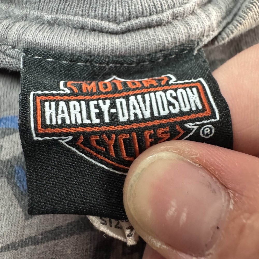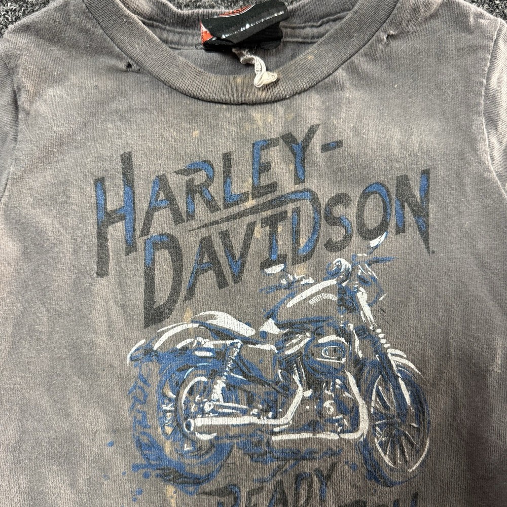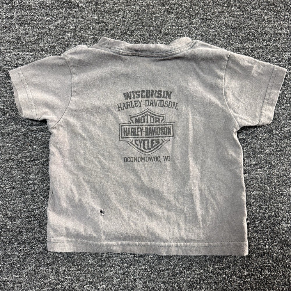 This toddlers boys Harley Davidson motorcycle short sleeve shirt in grey is a stylish and fun addition to any young boy's wardrobe. Made from soft cotton material, the shirt features a graphic print of the iconic Harley-Davidson motorcycle logo. The short sleeves make it perfect for warmer weather, and the grey color adds a versatile touch to the overall design. Ideal for a little boy who loves motorcycles or who simply appreciates the Harley-Davidson brand.