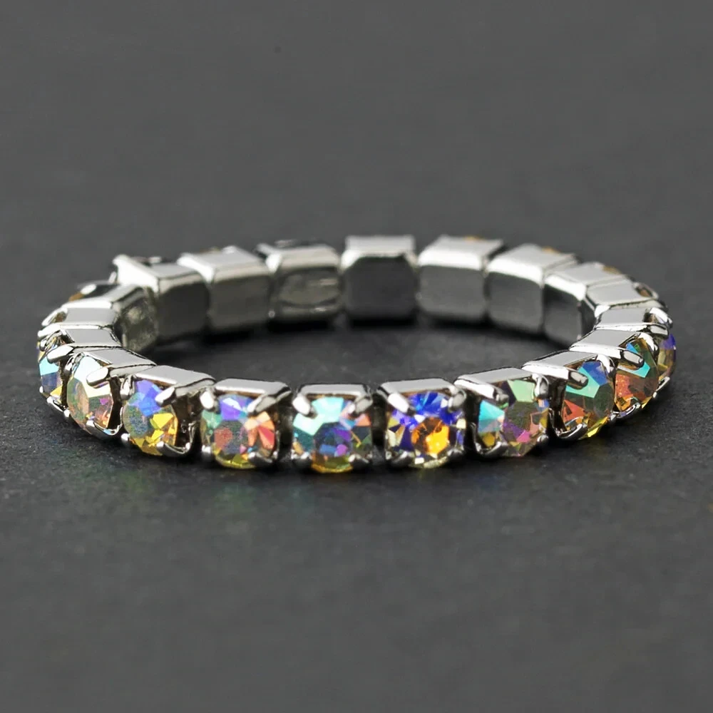Welcome! This stylish AB crystal toe ring is the perfect accessory for anyone looking to add some glamour to their outfit. The stretch elastic zinc alloy band is one size and the stones are sparkly AB rhinestone crystal. Whether you're looking to wear this for a night out or just to add a bit of sparkle to your everyday look, this black crystal toe ring is sure to impress.