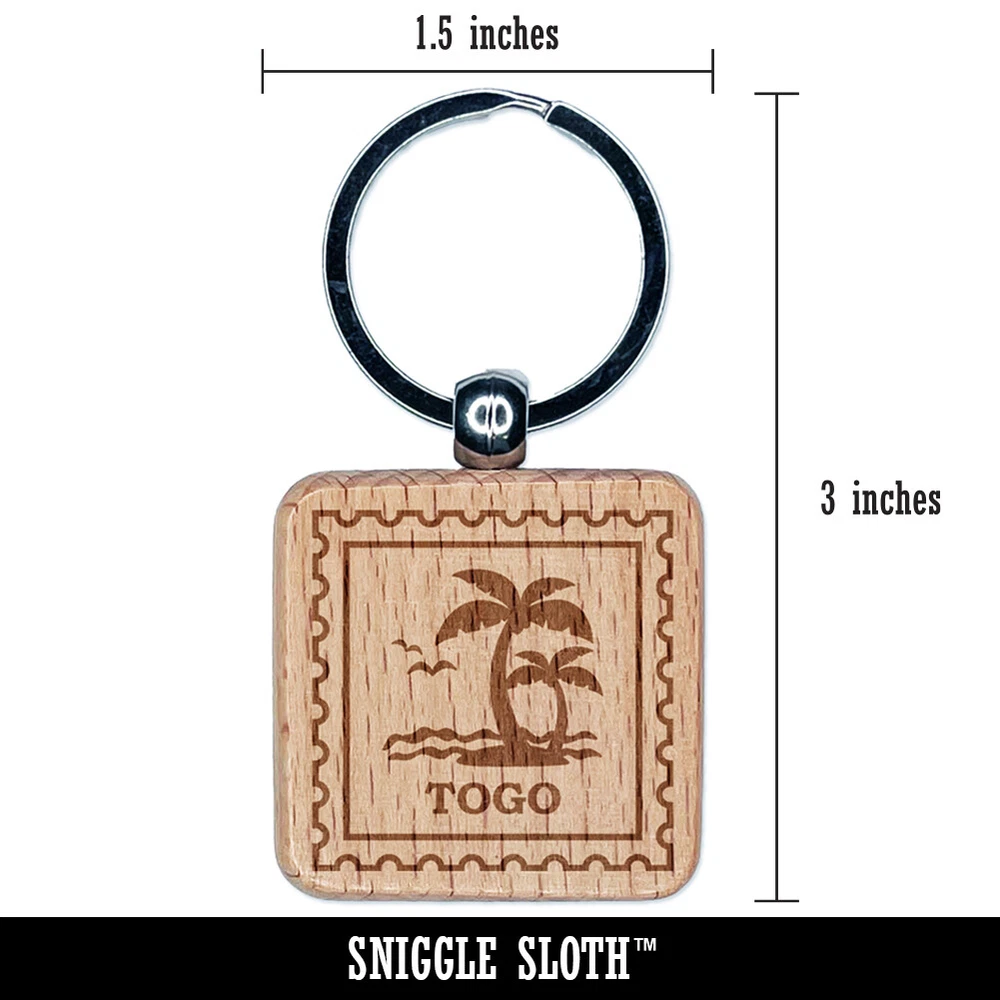 Togo Travel Palm Tree Beach Ocean Waves Engraved Wood Square Keychain Tag Charm
