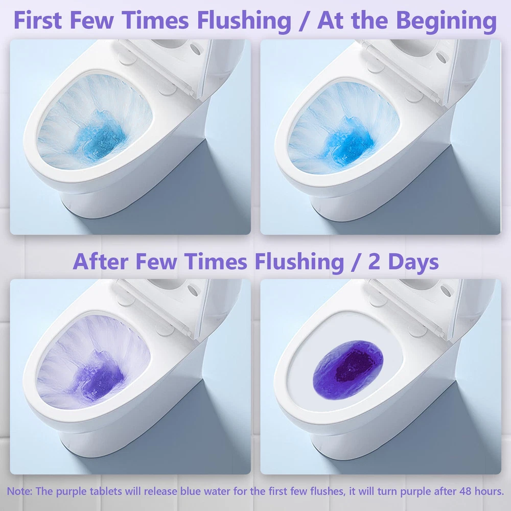 Effective in Cleaning: toilet bowl cleaners effectively help you clean the tank, water pipe and other parts of the toilet bowl. Each flushing keep your toilet clean as new Long-Lasting Life: Each automatic toilet bowl cleaner can continuously the toilet for up to 15 days (Even 20 days) with 20 flushes a day. With 6-12-20-40 packs for choice. toilet bowl cleaner can keep clean and fresh for over 3-20 months; Easy to Use: Simply place a piece of toilet tank cleaner into the tank (away from the spout and inlet) and let it fully dissolve for at least 30 minutes;(Please note, do not remove the water-soluble transparent protective film) Deodorize & Smell Freshing: This toilet tabs made of the material which are friendly and pollution-free. It will keep your toilet smelling fresh and clean; Important Note: toilet cleaner can reduce the buildup of dirt in the toilet bowl, but are not for toilet brush. Please clean the toilet bowl with a brush before the first time using our products. When the toilet bowl cleaner dissolves completely and the BLUE/GREEN/PURPLE water turns transparent, please replace it with a new .