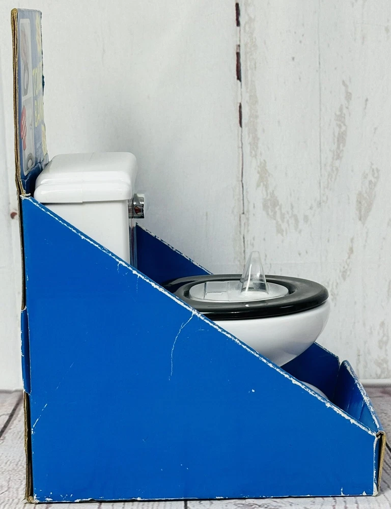 Original packaging has quite a bit of wear - see pictures This unique collectible item is perfect for anyone who loves vintage toys and quirky decor. It features a realistic flushing sound and is made of durable plastic material. The toilet coin bank is a great addition to any collection, and its brand, Fun-Damental Too LTD, adds to its value. It makes a great gag gift for a loved one or for anyone who appreciates unique and quirky items.