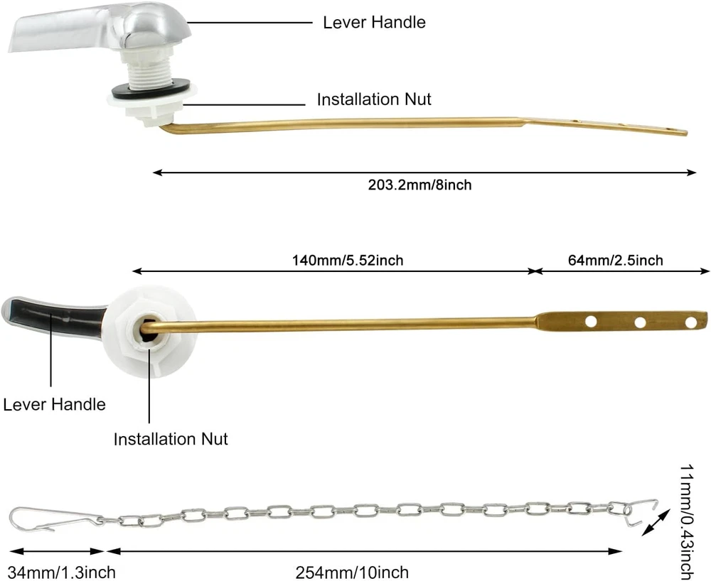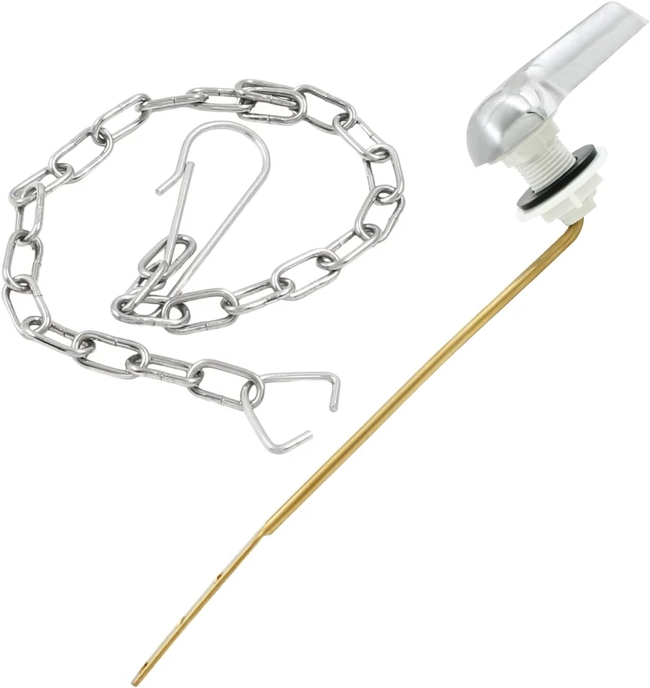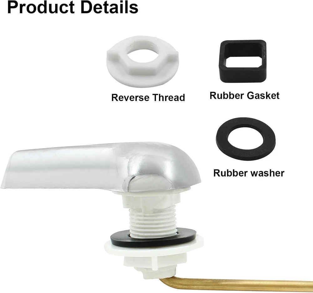 Outstanding Quality: Toilet handle make of high quality brass and ABS plastic, with steel rod and chrome finish. Durable design, easy to clean and maintain. Finished with plastic nuts and rubber seal gaskets, it can be effortless fitted to existing toilet fixtures. Universal Design: The universal toilet handle is designed to fit the popular toilet side arm mounted flush lever. The toilet rotate handle is suitable for the square mounting holes. Flush lever lock nut with backward threads, which helps to prevent loose. Three holes are pre-drilled in the handle to accommodate different baffle distances. Easy Installation: Packing include a side mount toilet tank flush lever, 2 pieces of seal washers, a flapper chains. Easy to install, just need some simple household tools to Installation Efficiency Flushing: No need to apply pressure, the chrome finished toilet handle is very suitable for kids, toddlers and elderly. From household washrooms, public lavatories to commercial restrooms, it is a fancy and functional flusher. 90-Day Warranty: We strive to make you 100% satisfied. If you have any quality problems after receiving the goods, please contact us in time, we will give you a satisfactory answer as soon as. About Moicstiy Moicstiy is a comprehensive brand, especially in hardware has excellent expertise and manufacturing process, worthy of your trust, welcome your purchase, we will be happy to serve you! Specification: Product Name: Toilet Trip Levers Material: Stainless Steel+ Copper Color: Chrome Warm Tips Please allow reasonable error due to manual measurement. 90 Days Worry-Free After-Sales Service Making you satisfied is our greatest motivation. To provide you with 100% service is our purpose. If you have any quality problems after you receive the goods, please contact us within 24 hours and we will give you an answer as soon as possible!