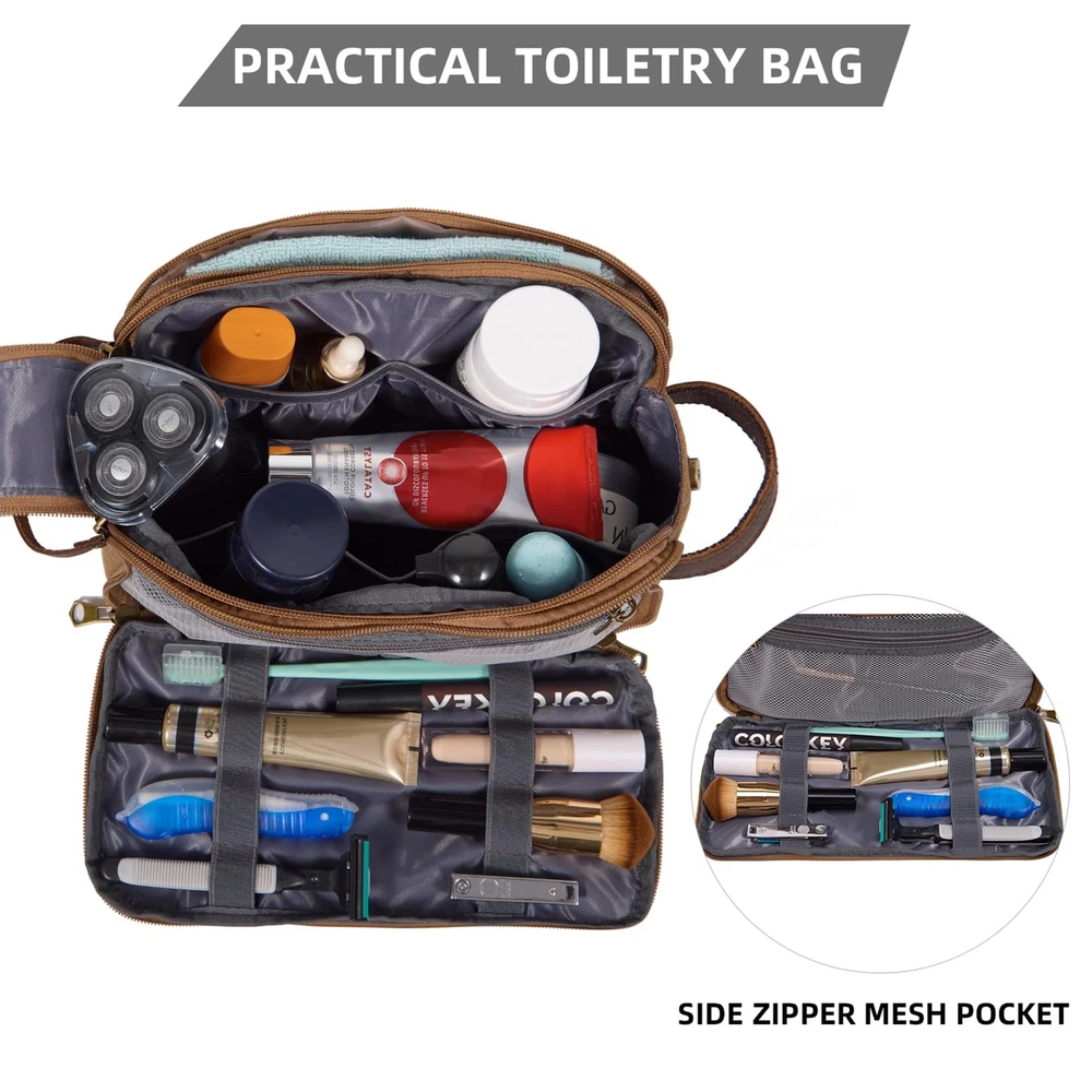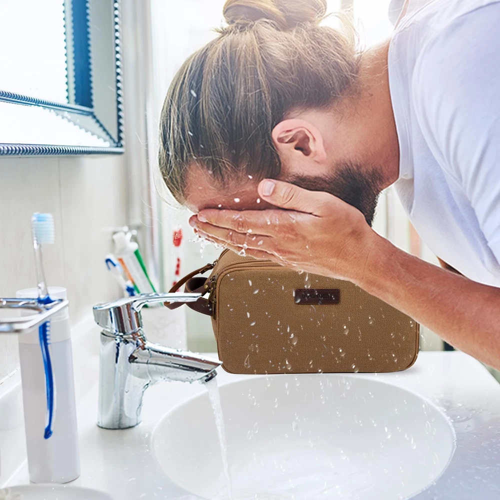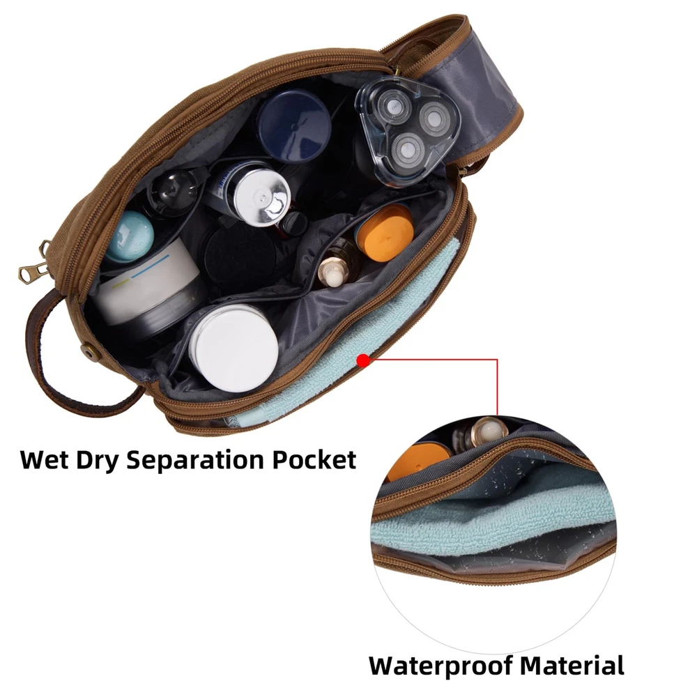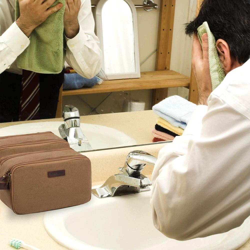 DENGFENGZHE Toiletry Bag for Men,Canvas Travel Toiletry Organizer Dopp Kit Large Capacity Water Resistant Shaving Bag for Toiletries Accessories (Brown, Medium) LARGE CAPACITY and MULTI-FUNCTIONAL POCKETS: Travel toiletry bag Medium Size: 10.5x5.5x6.5 inches; Large Size:12x6x7 inches. 1 Main compartment with 4 open side pockets, which is roomy to fit facial cleanser, electric shaver, travel shampoo, makeup and other toiletries. 1 side zipper waterproof pocket, effectively achieving wet dry separation; and the other side zipper pocket with mesh zipper pocket and elastic band, convenient for you to sort and access vacation essentials. QUALITY MATERIAL: Our travel makeup bag made of comfortable canvas, which is long-lasting use; come with full grain leather handle and sturdy hardware. It is a great toiletry bag or cosmetic organizer, make your trip more relaxed and en-joyful. STYLISH and RETRO DESIGN: This men's/women's toiletry bag with simple color matching, offer different colors, grand, fashionable, and high-end, perfect for carrying when going out. It has a side handle that can be easily hung in the bathroom or closet. Easily placed in your luggage, very convenient during your travel. PERFECT GIFT: This travel bags also cosmetic bag, it is an excellent travel accessory for men and women. The toiletry bag is easy to pack and fits well in backpacks, perfect for business trips, travel, gym, camping, and family outings. It is a great gift for men, women, father, uncle, husband, friends, and those who love to travel. 100% SATISFACTION: We will make sure that every customer gets a great buying experience. If you find any issue with this travel toiletry bag, please contact us immediately, we will give you a satisfactory solution. SHIPPING Domestic Buyers - We have confidence in our products, but if you are not fully satisfied please contact us within 30 days of purchase and you will get full refund. - We ship within 3 business days of payment, usually sooner - We offer FREE shipping on all orders! - We only ship to the lower 48 states, no APO/FPO addresses or PO Boxes allowed International buyers – please note: Import duties, taxes, and charges aren't included in the item price or postage cost. These charges are the buyer's responsibility. - Please check with your country's customs office to determine what these additional costs will be prior to bidding or buying. * Order Cancellation Policy ** You can return a product for up to 30 days from the date you purchased it. 1. The seller reserves the right to cancel the special case only due to eBay cancellation fee. 2. The decision of seller is the final. 3. The seller will respond to the cancellation request within 2 business days. Please wait for the result of cancellation. 4. In case the cancellation is not completed by some reasons, the buyer can follow the options below to get the refund. 4.1 The buyer can reject the item when it arrives. 4.2 The buyer can send the item back to the seller within 30 days If the buyer receives item (USA Shipment ONLY). The seller will provide the FREE return label to the buyer when the buyer opens " Return Item" case on eBay by using the reason as "Change my mind" ONLY. 5. When buyer has placed the order. The order will be processed and completed by automatic warehouse system within 5 minutes. In case that buyer sends the cancellation request after 5 minutes of placing the order, the request will be rejected. **Sending direct message to cancel the order is not allowed for every case.* Return Policy For the return case - If buyer would like to return the items for refund or replacement, please CONTACT SELLER to receive the free return label from seller. The refund or replacement will be processed with the tracking number of return label which is provided by seller only. The other ways of return which are not approved by seller will not be processed for the refund or replacement.