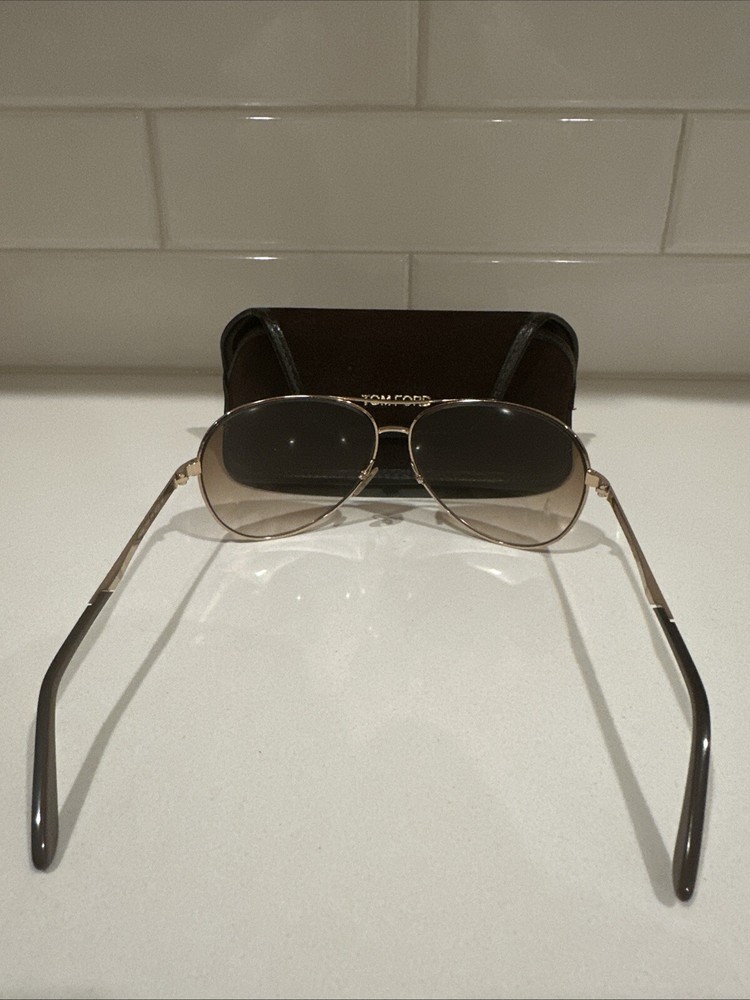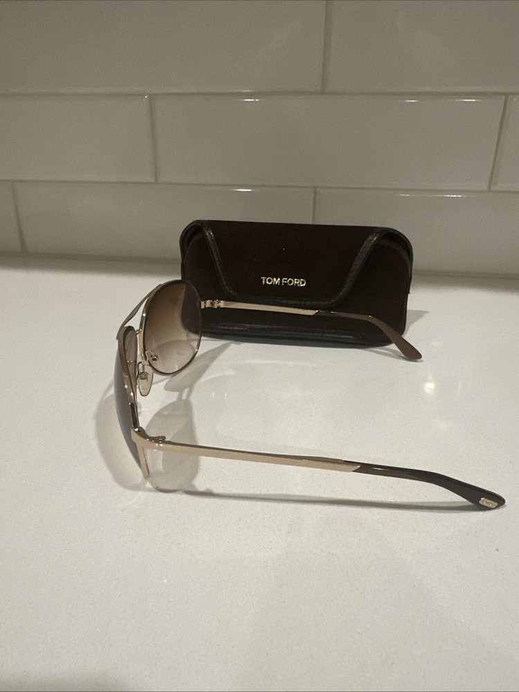 These are Tom Ford Charles TF35 sunglasses in a stylish rose gold color. They are designed for unisex adults and feature gradient brown lenses with UVA protection. The frame is a combination of plastic and metal materials, showcasing a designer touch. A fashionable accessory for both men and women.