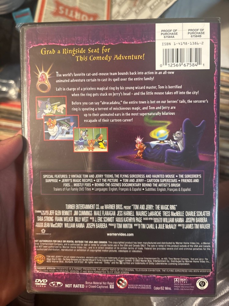 Run Time:85 min.Genre:Animation-Children's & Familygtin13:0012569675841Format:DVDItem Weight:0.20 lbCountry/Region of Manufacture:MexicoNumber of Discs:1Item Width:5.52 inUPC:0012569675841Item Height:0.57 inMovie/TV Title:Tom and Jerry: the Magic RingLanguage:English, French, SpanishStudio:Warner Home VideoRelease Year:2001Producer:Tom MintonItem Length:7.52 inDirector:Deitch, Filmation, Hanna/Barbera, James T. Walker, Jones, Tex Avery