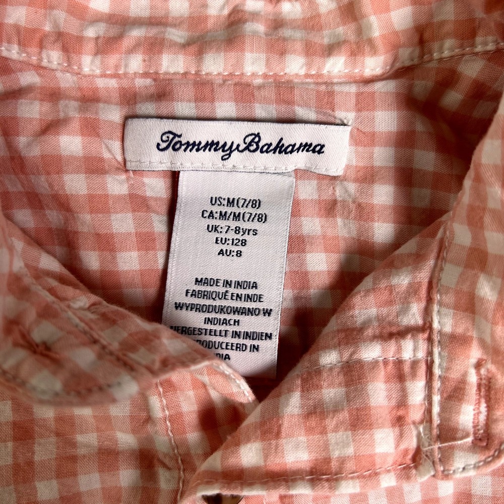 Tommy Bahama Button Up Shirt Boys M 7/8 Pink White Plaid Occasion Wedding Photos Condition: Good pre-loved condition. Could use a good ironing. This Tommy Bahama button-up shirt is perfect for dressing up your little one! Ideal for special occasions like photo sessions, school photos, gender reveal parties, weddings, Easter, or any event where you want your child to look sharp and stylish. Features a classic pink and white plaid pattern that's both timeless and adorable. Size: M (7/8) Make your little one stand out with this awesome Tommy Bahama shirt!