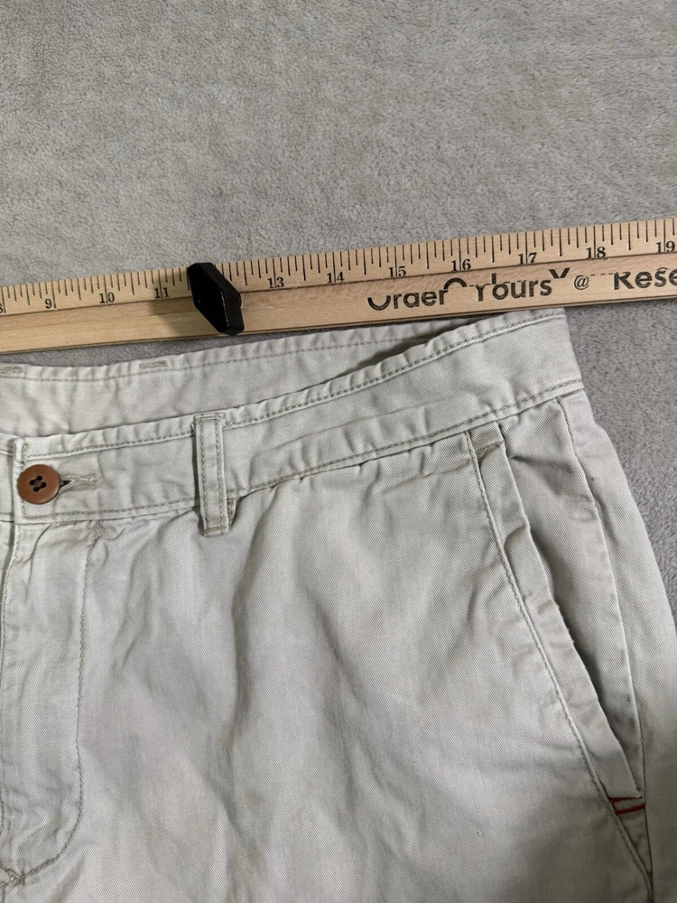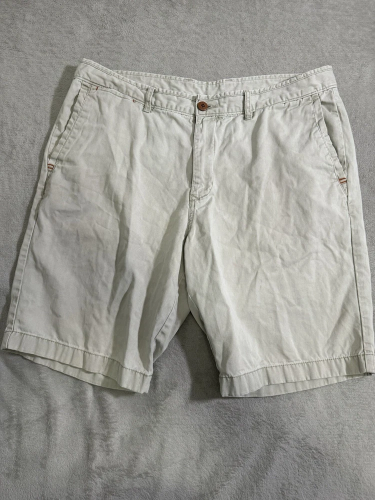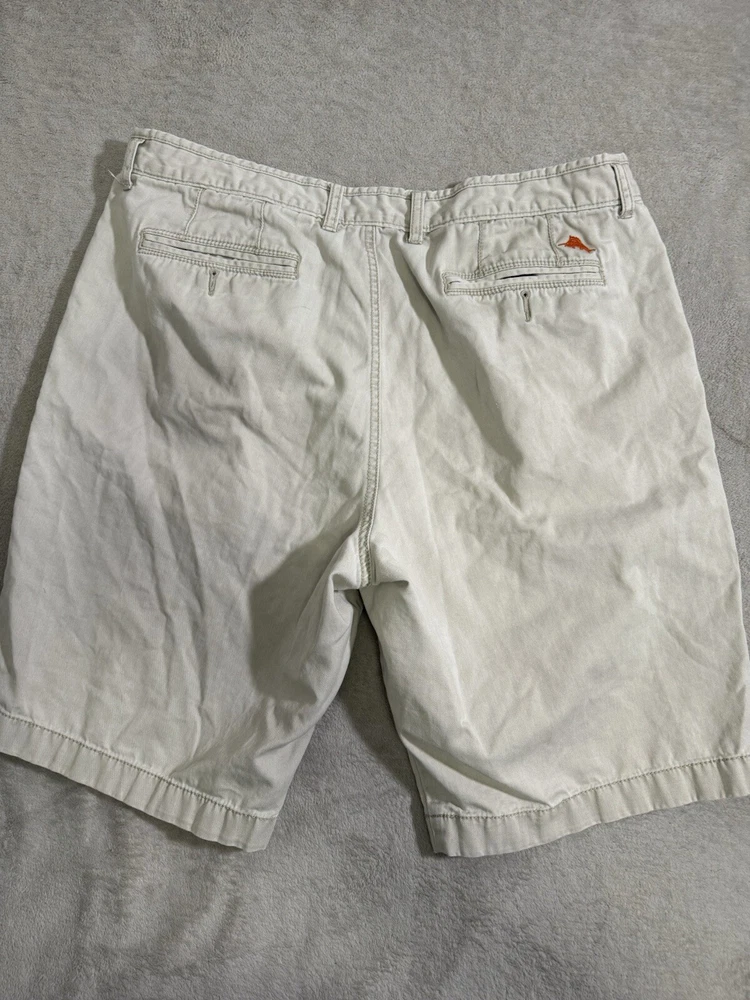 Elevate your style with these Tommy Bahama Chino Shorts in size 36. The beige color and solid pattern make them versatile for any occasion, whether it's a casual day out or a formal event. The flat front and relaxed fit provide both a classic and comfortable look. Crafted from stretchable cotton fabric with a medium wash, these shorts feature a zip closure and slash pockets for added convenience. Perfect for summer, fall, or spring, they are suitable for activities such as golf or a day at the beach. These shorts are a great addition to any wardrobe and are sure to become a staple in your style.