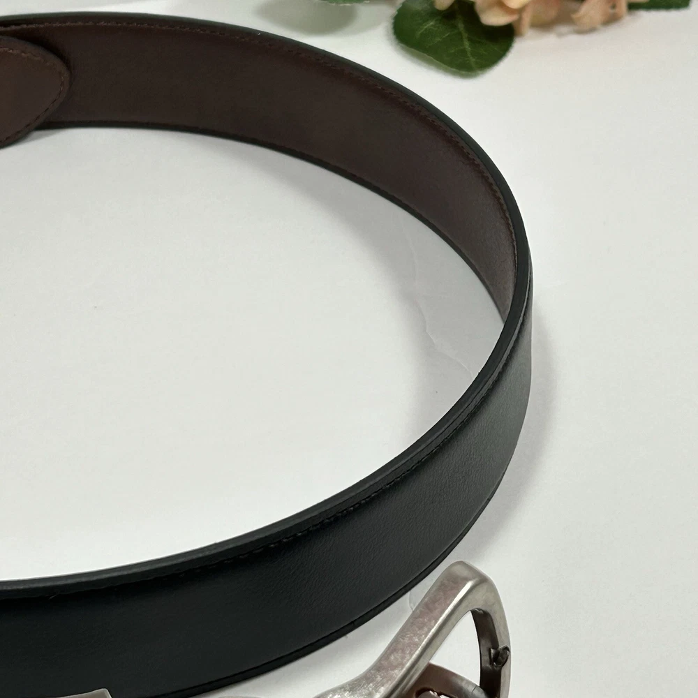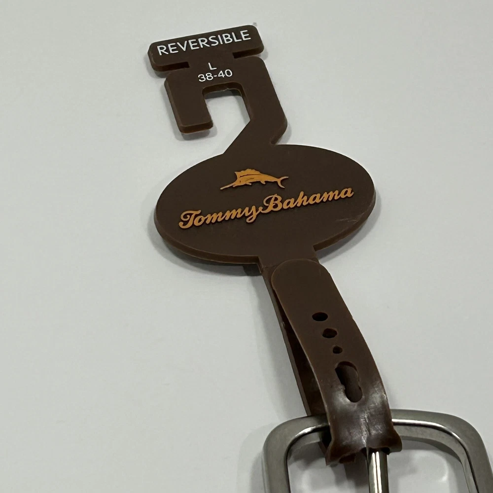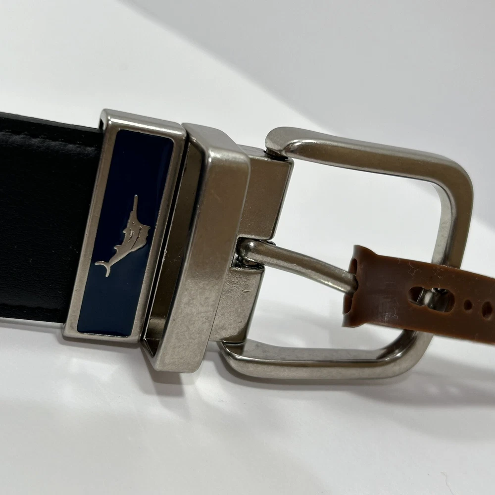 This Tommy Bahama Men's Reversible Black/Brown Leather Belt, size Large new with tags, will elevate your look. This belt is new with tag. While taking photos I notice that it has air bubbles on the blue paint as seen the last photos. As shown in the photos depending on the angel you stand you might notice the air bubble. This is a manufactured defect. If you need more photos or any questions send me a message .
