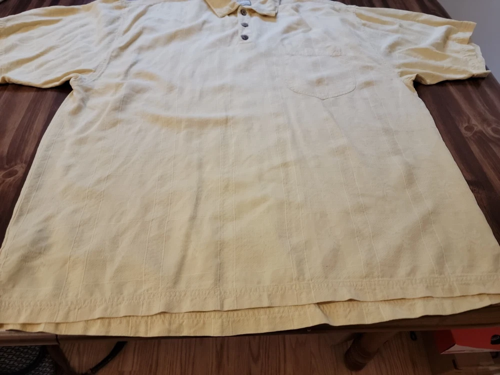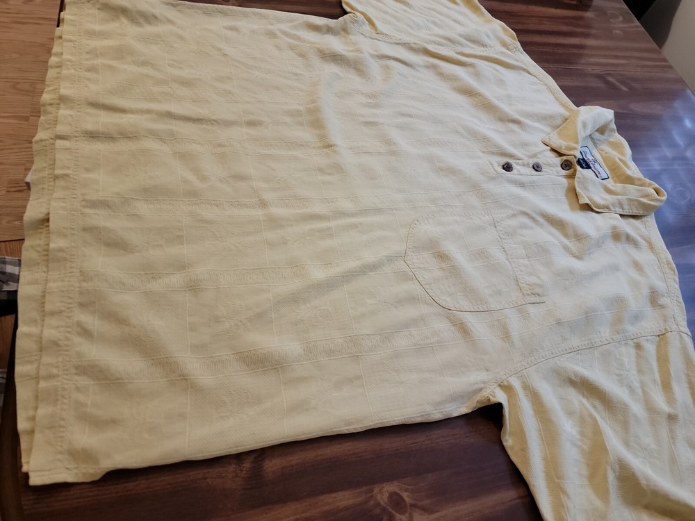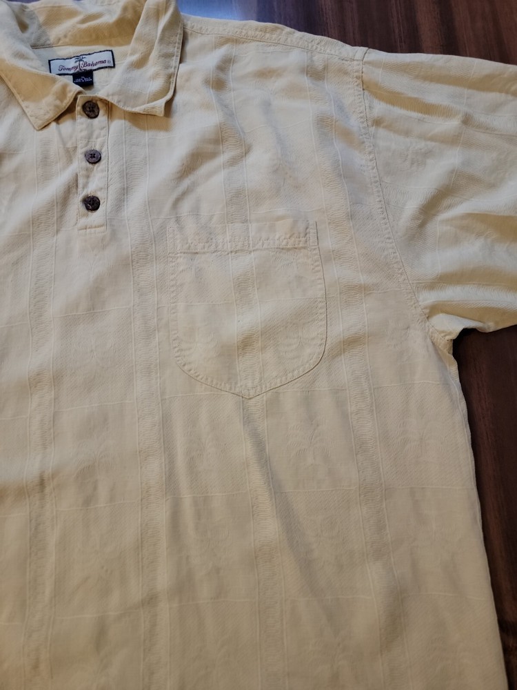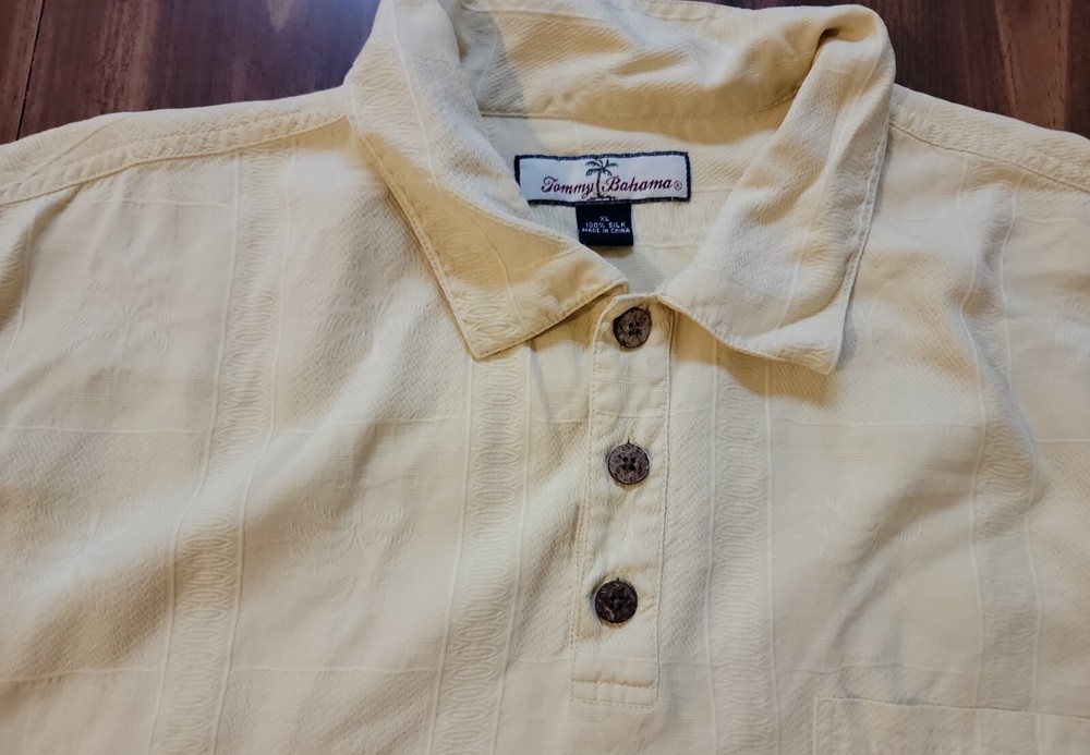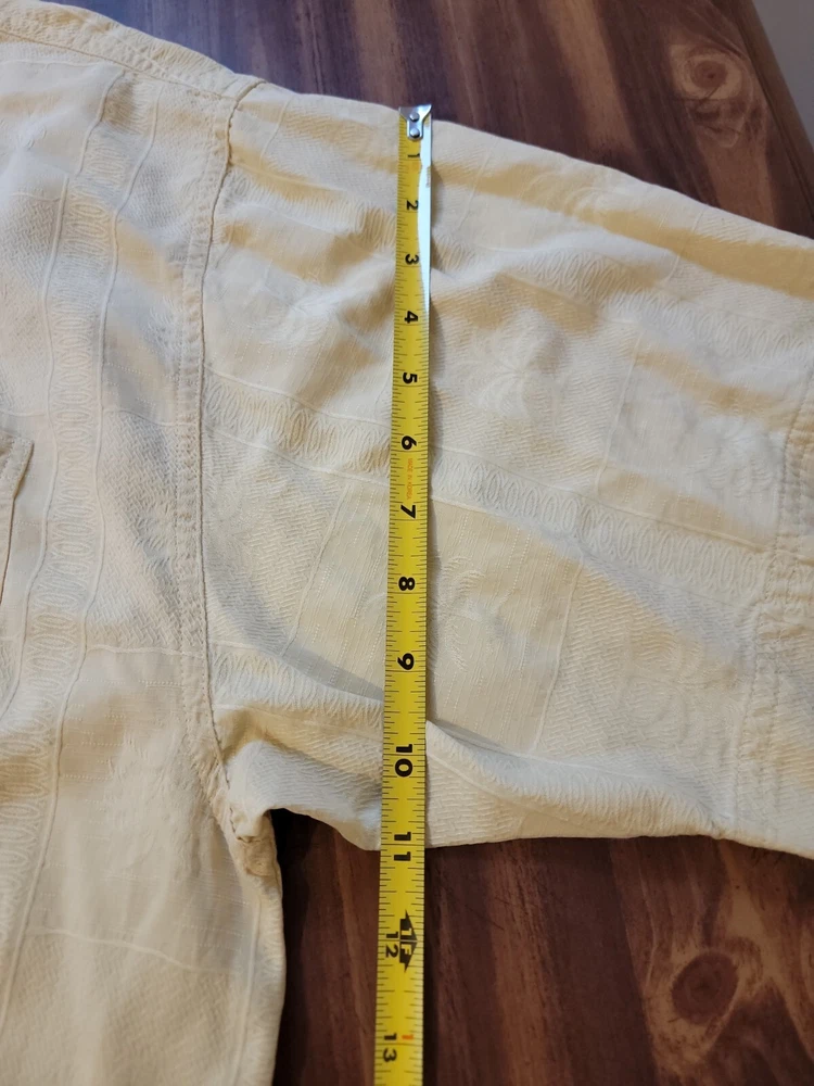 100% silk shirt is in very good used condition and is free from holes, tears, rips and stains. Stored in a smoke-free environment. There are palm trees embroidered in the material. Please see pictures for details and sized dimensions. COMBNED SHIPPING I have immediate payment turned off. To purchase multiple items, buy each one and do not pay. At the end of each day I will send an invoice to each buyer with multiple items and combine shipping. If you are waiting more than 1 day for an auction to end before paying, send me a message. SHIPPING MODES I automatically ship items media mail that qualify, so send a message if you prefer another shipping method and would like to pay for higher shipping. I am happy to ship FedEx or UPS if you would prefer not to ship USPS priority. Just send me a message! CUSTOMER SATISFACTION I try to take good pictures and give good descriptions, but if you ever have any questions, just send a message and I will be happy to send more pictures or edit the listing for clarification. If you are ever unsatisfied with your purchase, please send me a message before rating and I will be happy to help resolve any issues. I combine shipping! I have immediate payment turned off. To combine shipping on multiple items, add each item to your cart. When you are ready to pay, go to your cart and click "Request Combined Shipping." I will then send you an invoice for combined shipping.