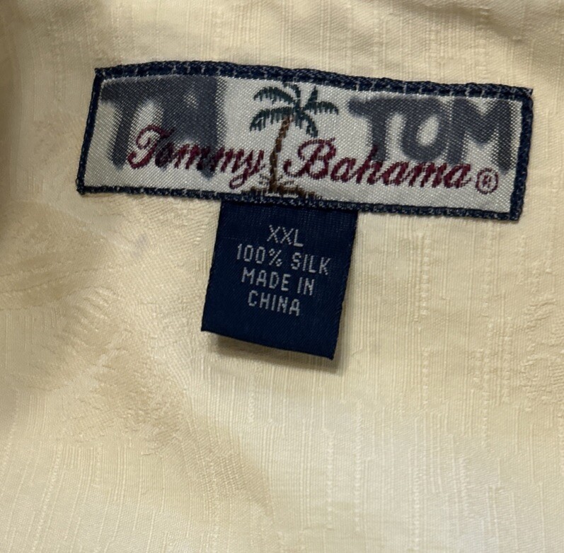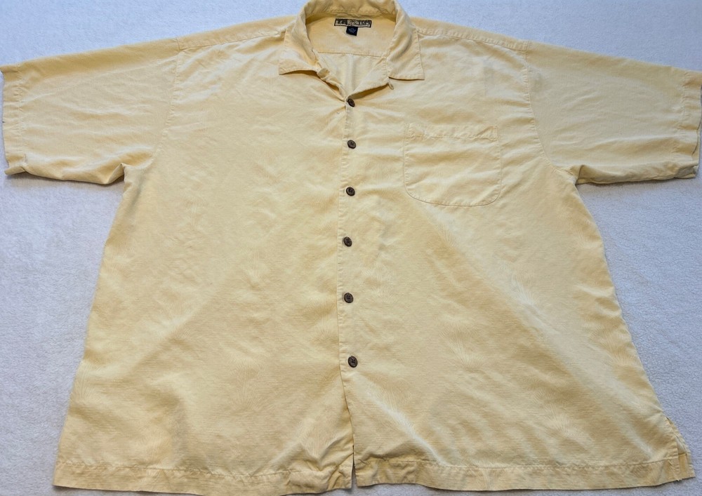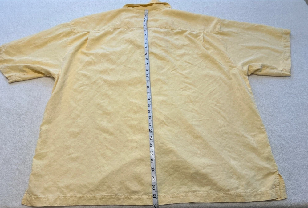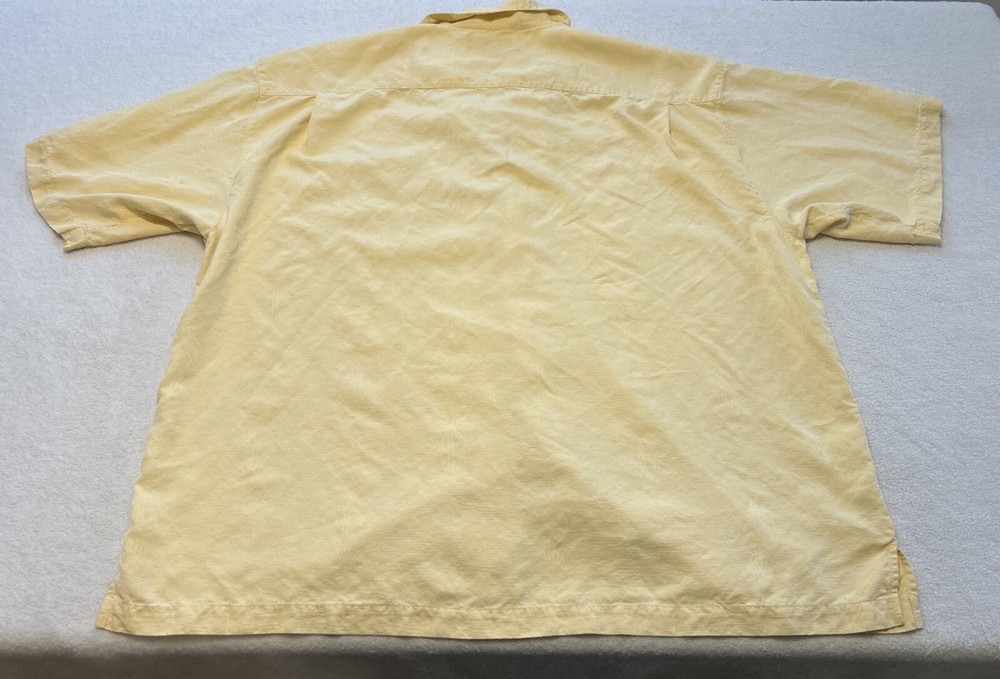 Tommy Bahama Shirt Mens 2XL 100% Silk Yellow Button Up Floral Hawaiian Camp