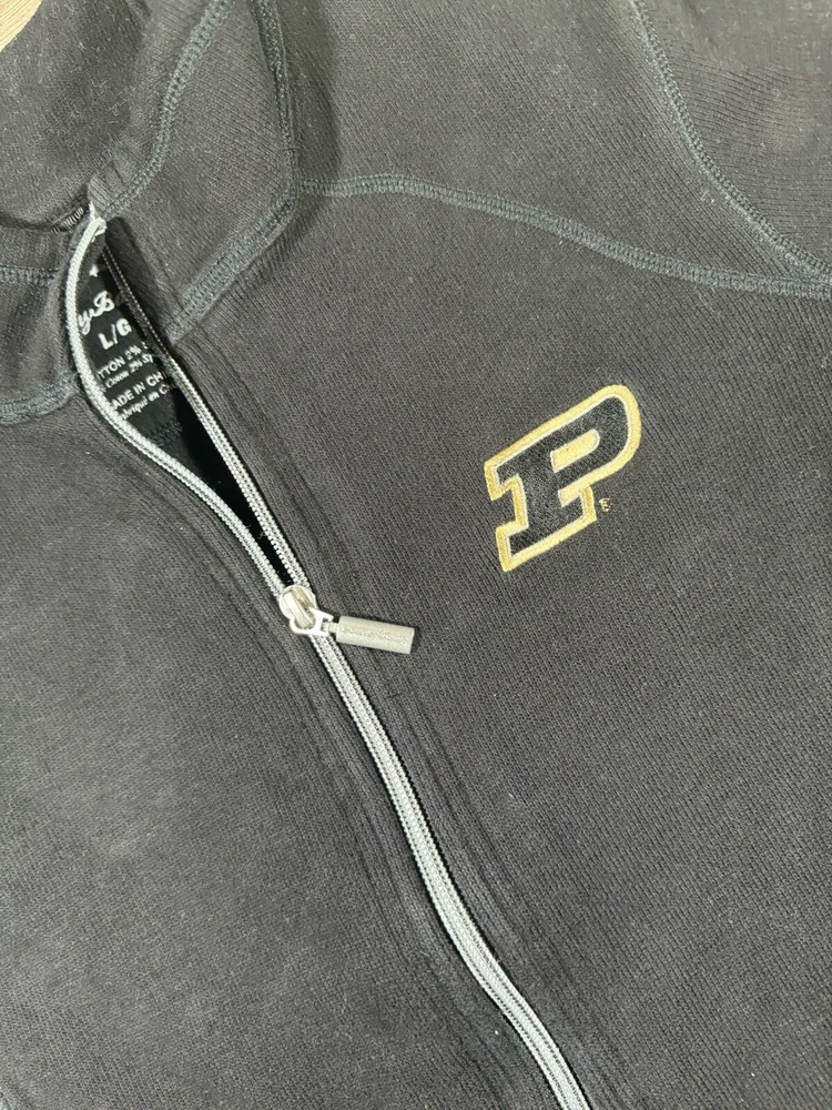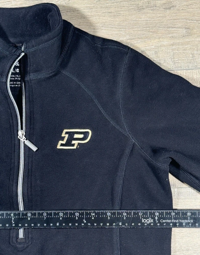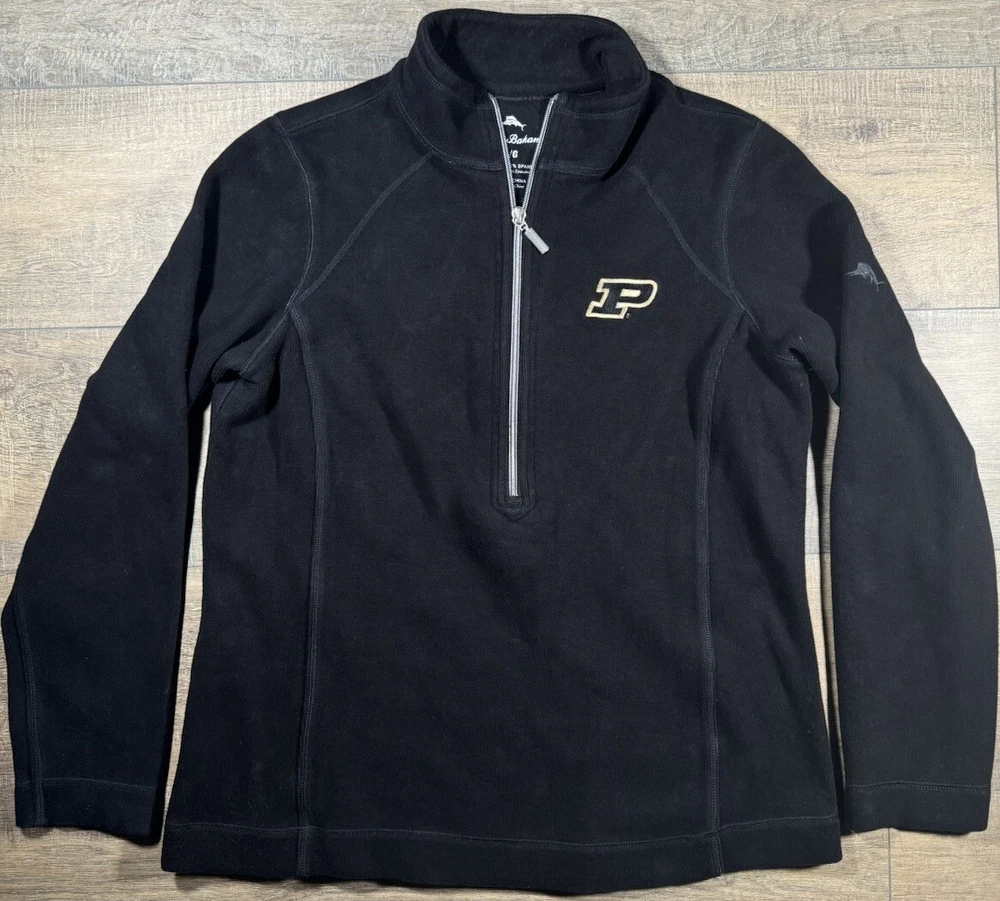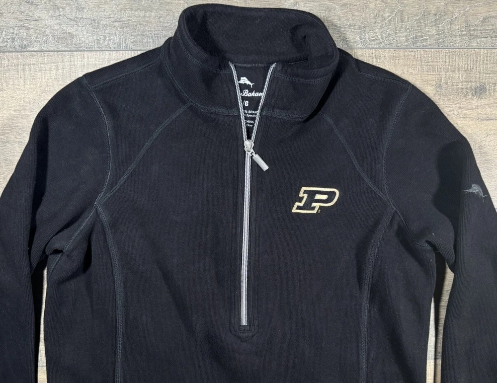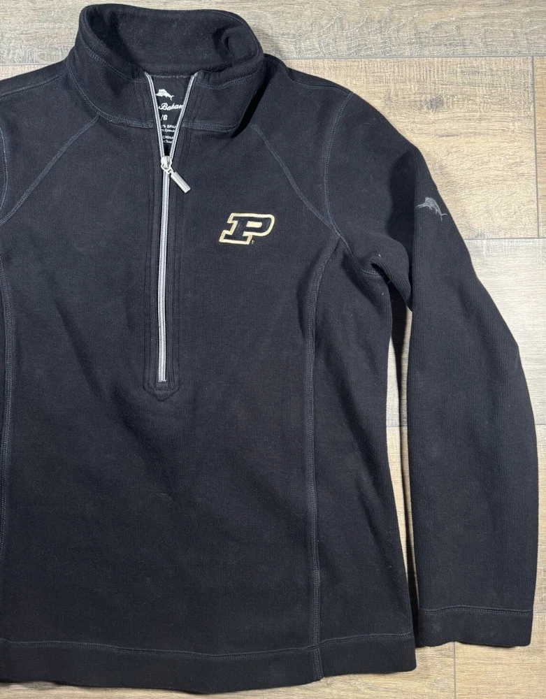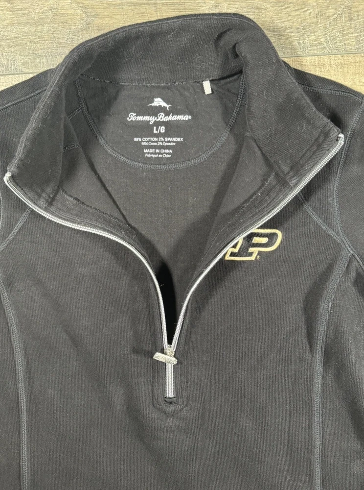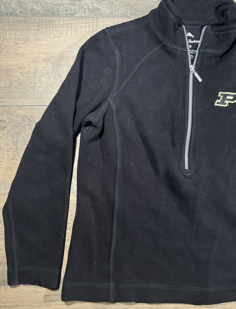 Tommy Bahama Sweater Women's L Cotton Blend 1/4 Zip Pullover Black Purdue Univ