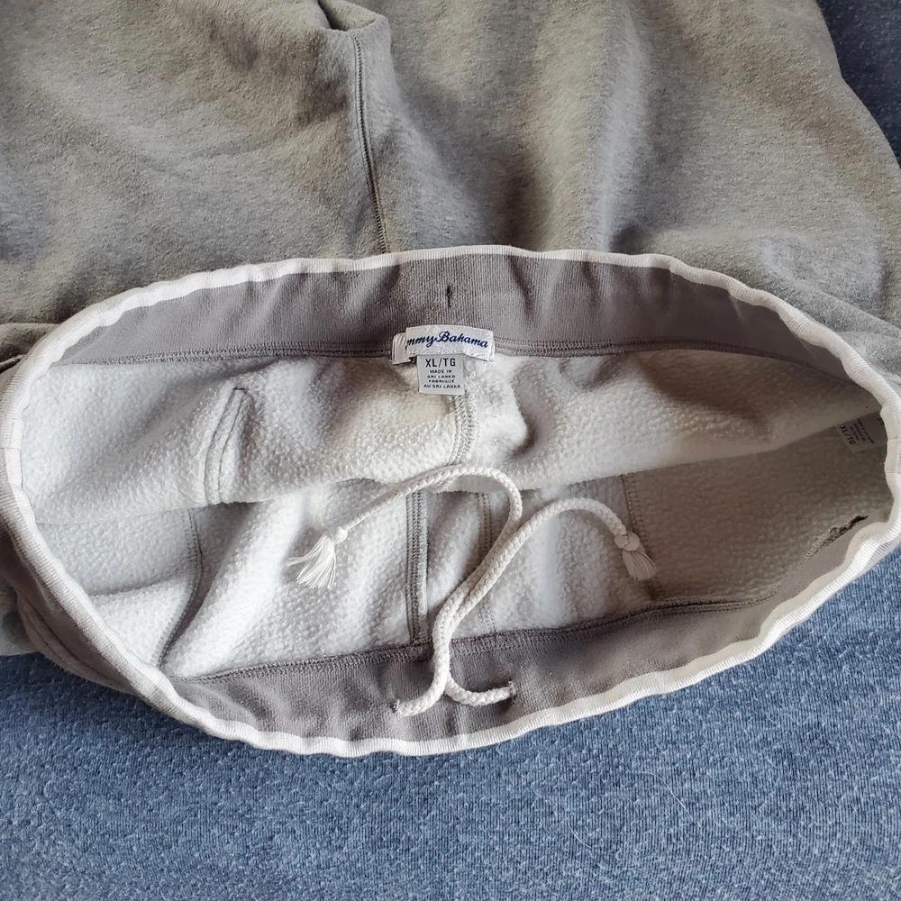 Size Type: Regular Performance/Activity: Walking, Running & Jogging, Gym & Training Type: Pants Occasion: Activewear Material: Cotton, Cotton Blend, Polyester Fabric Type: Blended Fabric Style: Sweatpants Features: Adjustable Waist, Easy Care, Elastic Waist, Heavyweight, Lined, Pockets, Fleece Lined Leg Style: Tapered Country/Region of Manufacture: Bahamas Size: XL Pattern: Solid Department: Men Color: Gray Vintage: No Theme: Classic, Sports Closure: Drawstring Inseam: 29 in Brand: Tommy Bahama