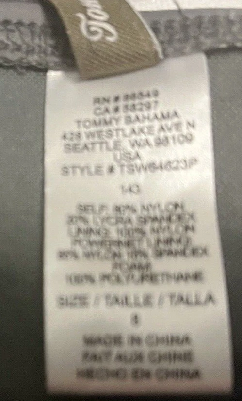 Accents: Ruffle Swim Top Style: twist top Garment Care: Hand Wash Only Color: Gray Pattern: Solid Swim Bottom Style: One piece Features: Adjustable Strap Size Type: Tall Vintage: No Department: Women Type: One Piece Brand: Tommy Bahama Cup Size: padded Seller Notes: “very gently pre-owned” Country/Region of Manufacture: China Number of Pieces: 1 piece Size: 8 Tall Theme: Beach, Classic Strap Type: Regular strap Material: Nylon, Spandex
