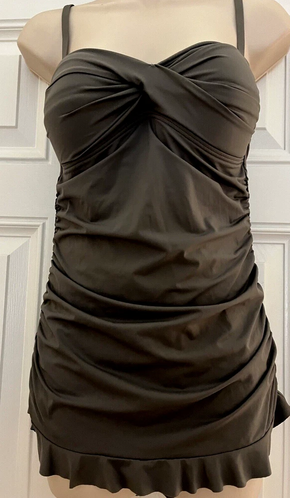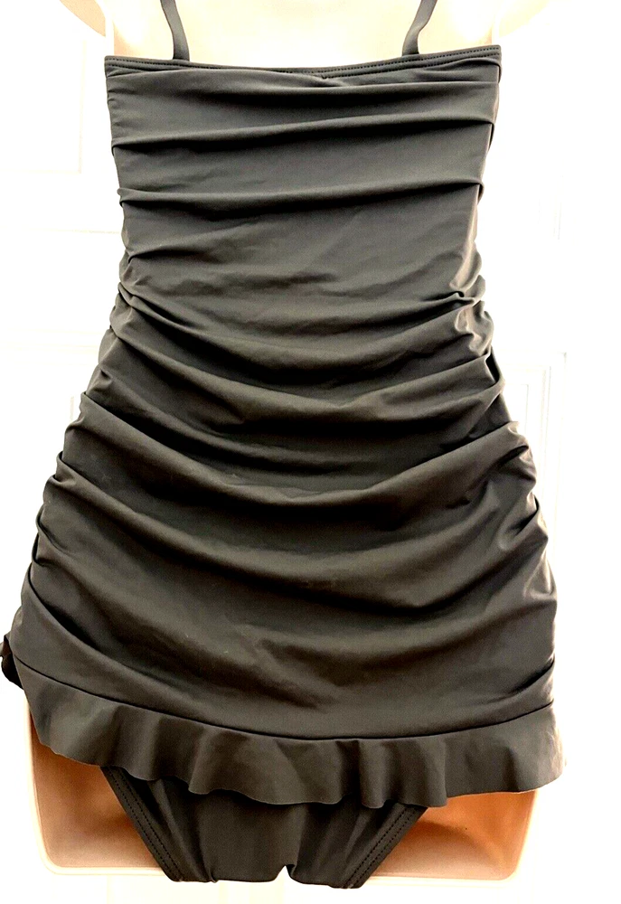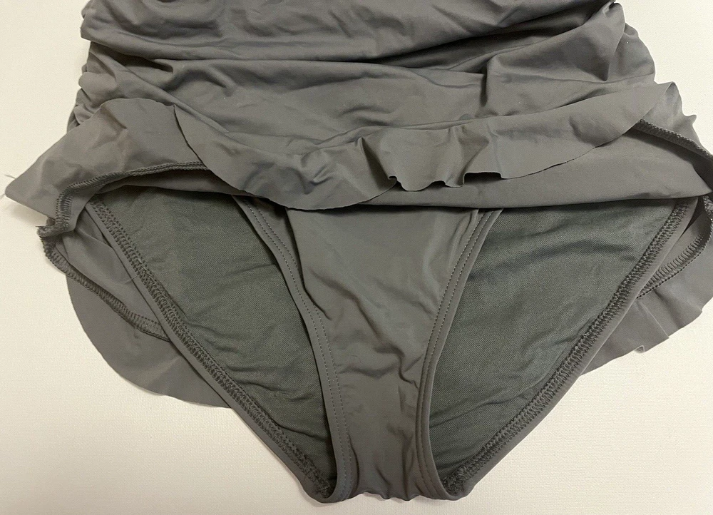 Tommy Bahama Women's Swimsuit Gray 1 Piece Twist Top Skirted Ruffled Size 8 Tall