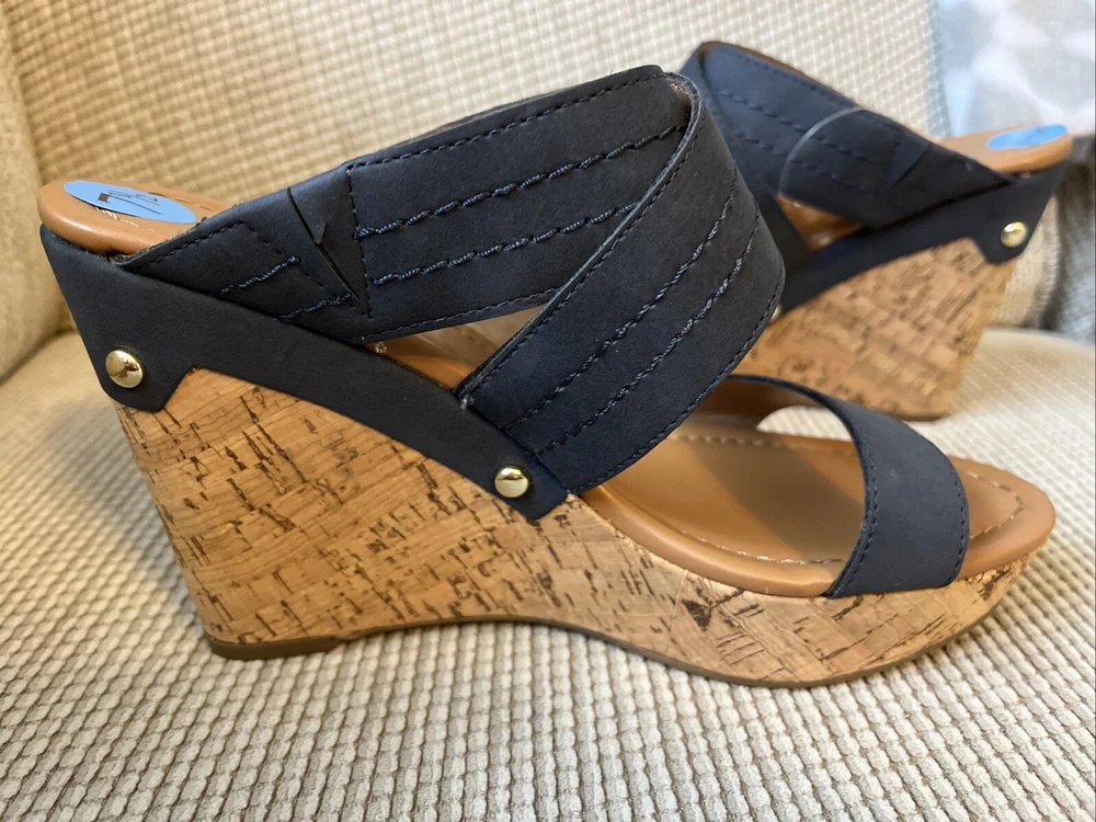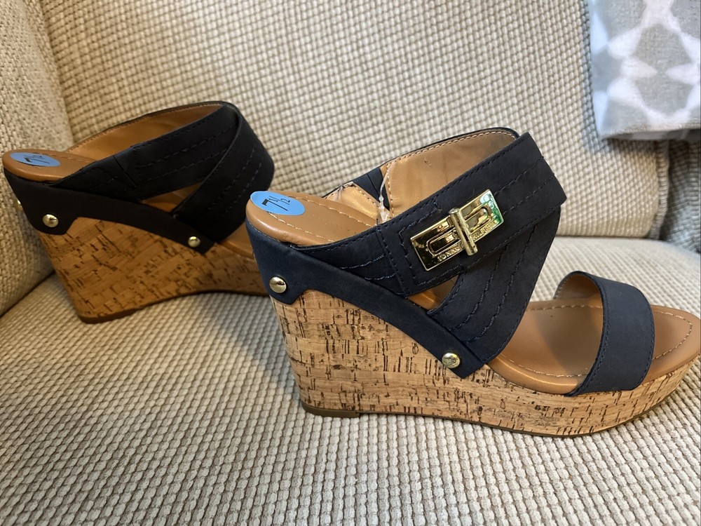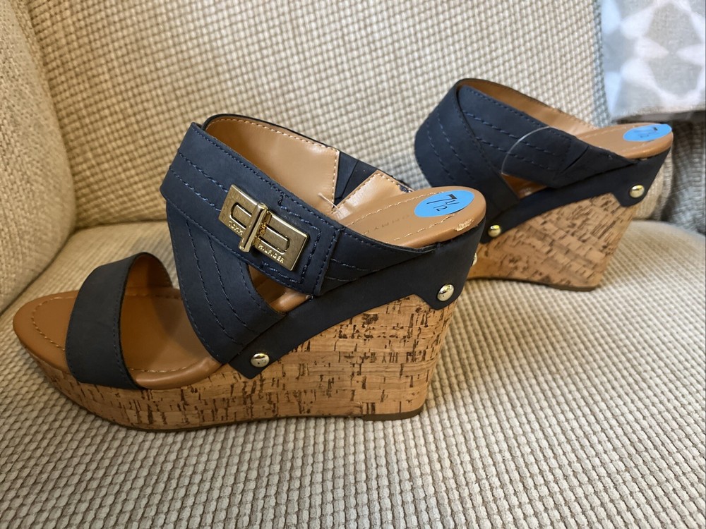 Tommy Hilfiger Blue Platform Wedge Sandals for Women Size 7.5