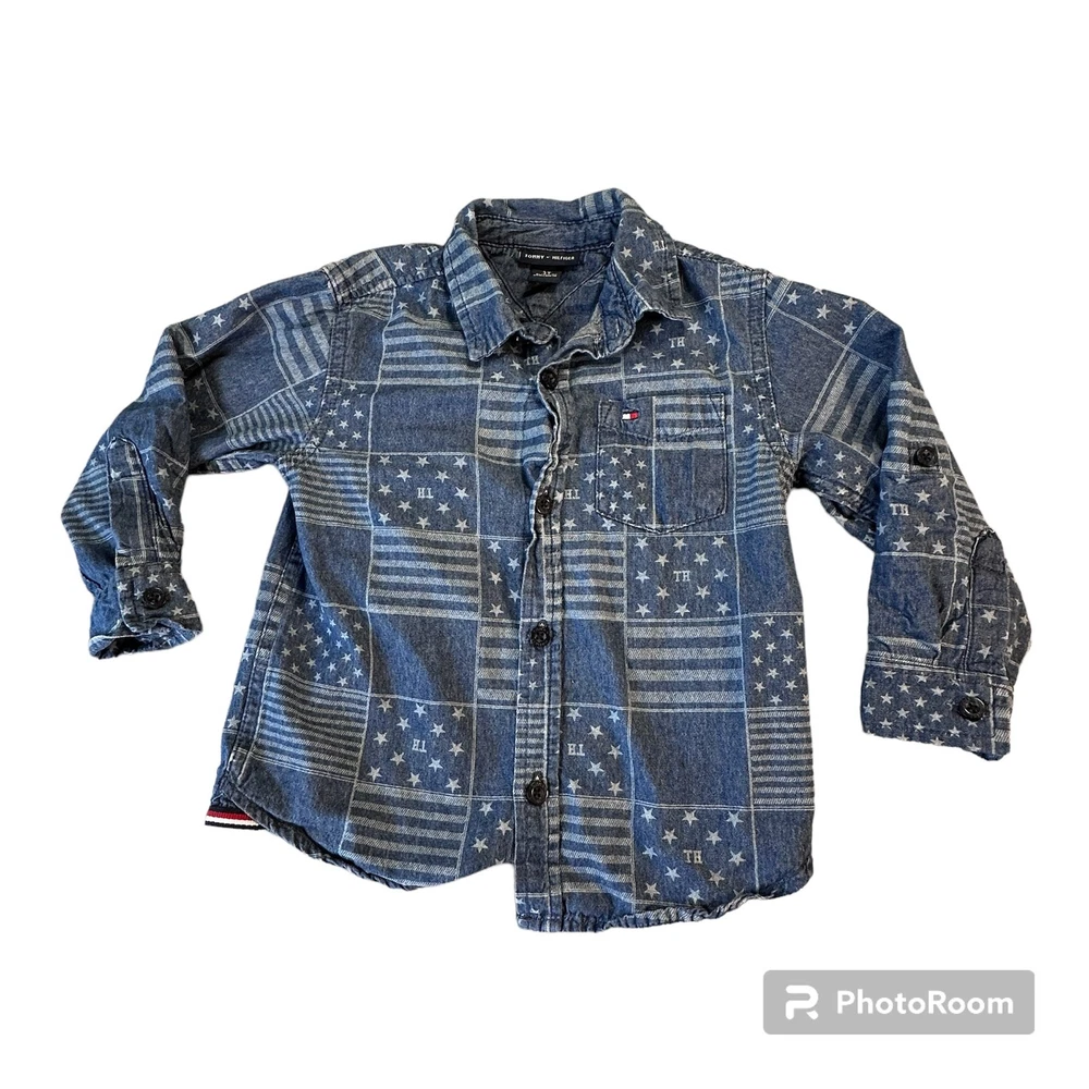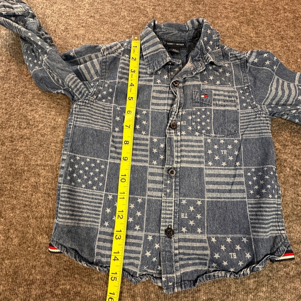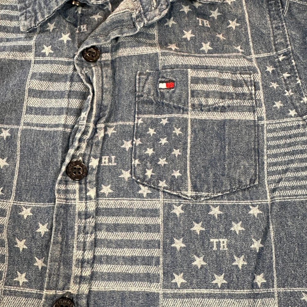 Tommy Hilfiger Boys 3T Long Sleeve 100% Cotton Button Up Denim Patchwork Shirt Gender: Boys' Brand: Tommy Hilfiger Size: 3T Color: Blue Stars and Stripes Patchwork Long Sleeves with Button Cuffs Button Front Collared One Chest Pocket with Tommy Logo 100% Cotton Made in Bangladesh Machine Washable Pre-Owned in Excellent Condition (EUC) *Colors may vary depending on lighting and individual viewing devices Offers Welcomed Bundle Discounts Available Fast Shipping 5 Star Seller Thank you for shopping my closet! Location 3 - 1110 Casual, Everyday, Denim, Fall, Winter, Spring, School, Daycare, Patchwork, American, Patriotic, Stars and Stripes, Cotton, Preppy