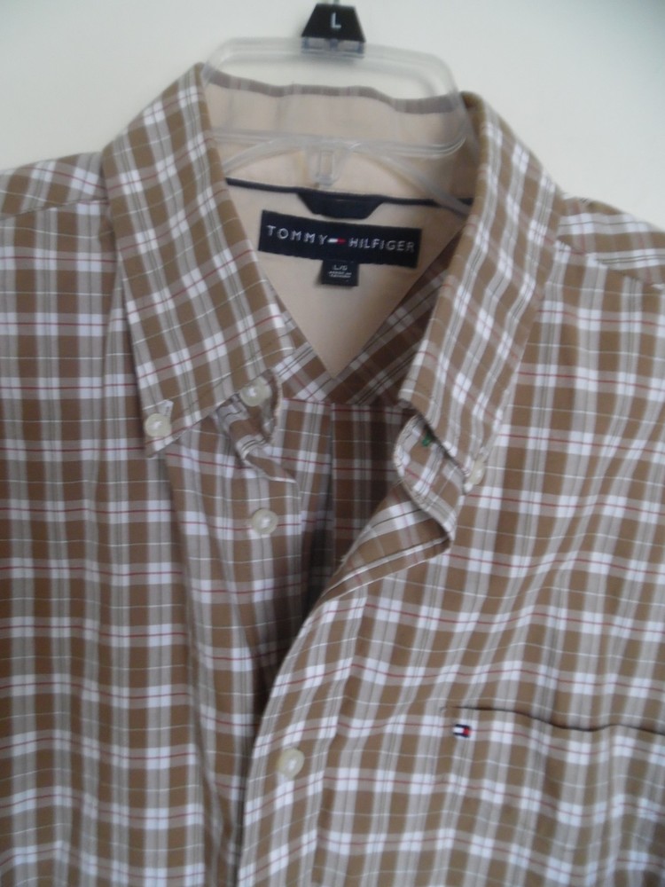 MENS TOMMY HILFIGER BROWN PLAID DRESS CASUAL SHIRT SZ L Armpit-armpit: 24" Length: 32" Lining: none Zipper: none Buttons: Yes Pockets: 1 AT Combined Shipment: USA : Highest item shipping cost + $2. for each subsequent item.Or, you can purchase as many items as you choose and pay the flat rate of $15.45 for your Priority Mail Large Flat Rate Box which covers your entire order. Please read the disclaimer below. INTERNATIONAL SHIPMENTS: Highest item shipping cost + $5. for each subsequent item. Please read the disclaimer below. DISCLAIMER on Shipping Costs: Our intention is to keep our shipping costs as low as possible. However, depending on the item purchased (weight) and the destination, shipping rates can vary; especially 14 Day’s No Questions Asked Returns Policy: Your satisfaction is very important to us. We have a 14 days NO QUESTIONS ASKED returns policy. The item must be returned in the condition in which it was purchased. If there are labels/tags they should not be removed. If they are, the item will be sent back to you. ANY SHIPPING COSTS WILL NOT BE REFUNDED. BOTH WAYS, receiving and any returns. Please contact us for the return shipping address and authorization. ALL COMMUNICATIONS MUST BE IN WRITING & TAKE PLACE THROUGH THE EBAY SITE ONLY. No private direct email correspondence. A customer care rep. will respond to you within 24 hrs (Mon-Fri). Once we have received the merchandise and inspected it, please allow 72 hours for a refund to be issued. NO See my other listings for more great items! We accept PAYPAL. Also we have a virtual terminal with PayPal through which we can accept Visa, MasterCard, Amex, and Discover. If you do not have a PayPal account, it takes virtually minutes to open International shipments: PLEASE DO NOT PAY until we determine your shipping costs. Most of our items also have an International Flat-Rate. Although, if due to the destination or the weight we are unable to honor the rate mentioned in the item’s listing, we will cancel your order and leave you positive feedback. Usually we use the US Postal Service. The best international rate for an international shipment is First Class (up to 4 lbs.)If your items exceed 4 lbs. we may pack them into two separate packages (and notify you of this).You still are eligible to take advantage of the combined shipping rates, even if we have packed them into two separate packages. The fees for packaging, shipping, insurance, Customs Duty Charges on international shipments are all the responsibility of the Buyer and are not included in the purchase price. If the item(s) are gifts, we could indicate “GIFT” on the customs form so you would avoid paying more on duty. \ Add a map to your own listings. FREE Trial!