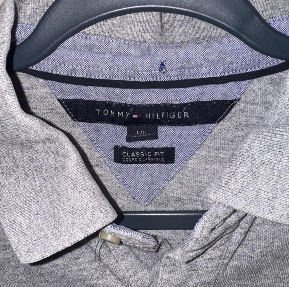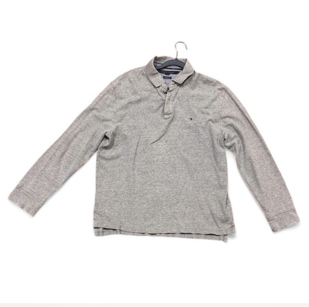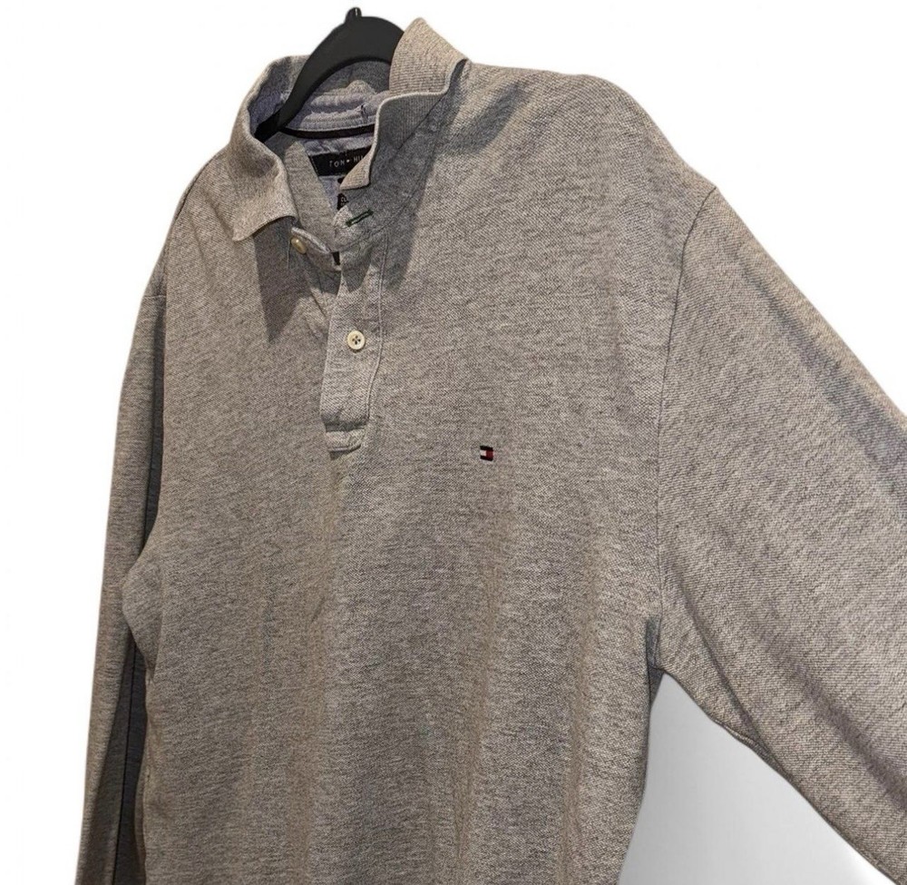 The Tommy Hilfiger Classic Fit Men's Large Grey Long Sleeve Polo Shirt is a stylish and versatile wardrobe staple for men. Made from 100% cotton knit fabric, this collared polo features a classic button closure and long sleeves, making it suitable for both casual and party occasions. The grey color and Tommy Hilfiger logo accent add a touch of sophistication to this timeless piece. With a regular fit and spread collar style, this polo is a perfect addition to any man's clothing collection, suitable for all seasons.
