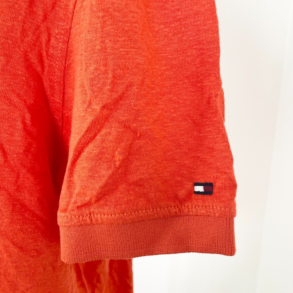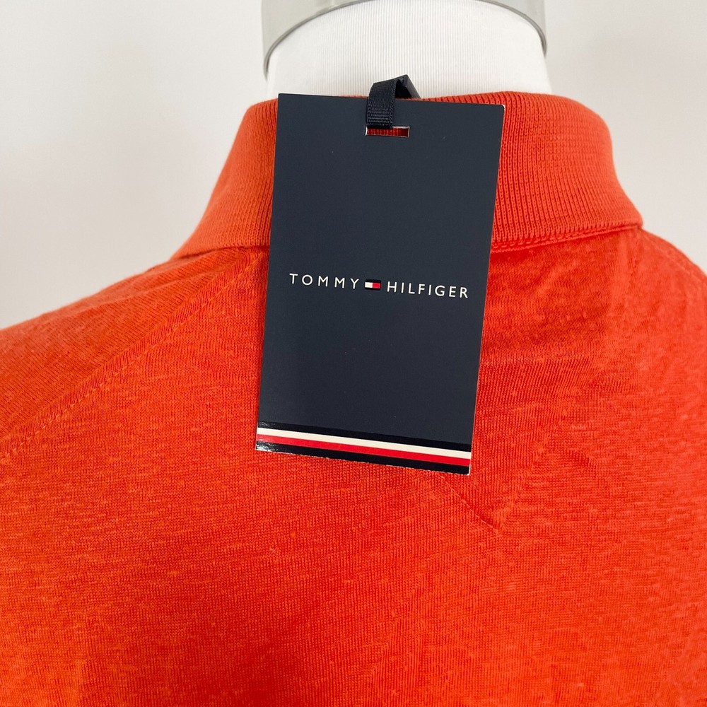 Tommy Hilfiger DC Linen Polo Mens M Florence Orange Short Sleeve Regular Fit New Brand New With Tags Sample Measurements: Shoulder to shoulder: 45 cm Underarm to underarm: 50 cm Length: 73 cm All clothing is measured laying flat, to get the correct measurements.