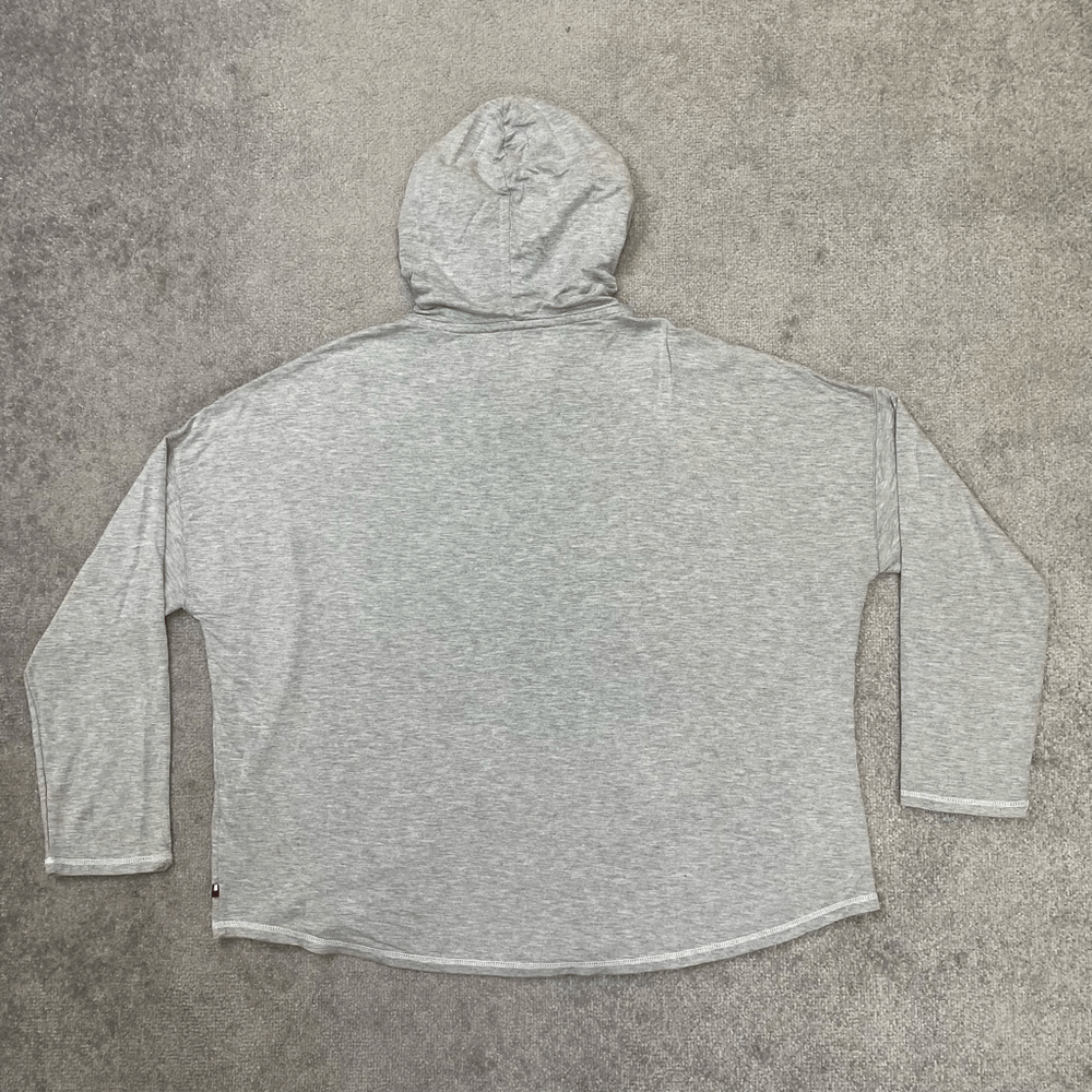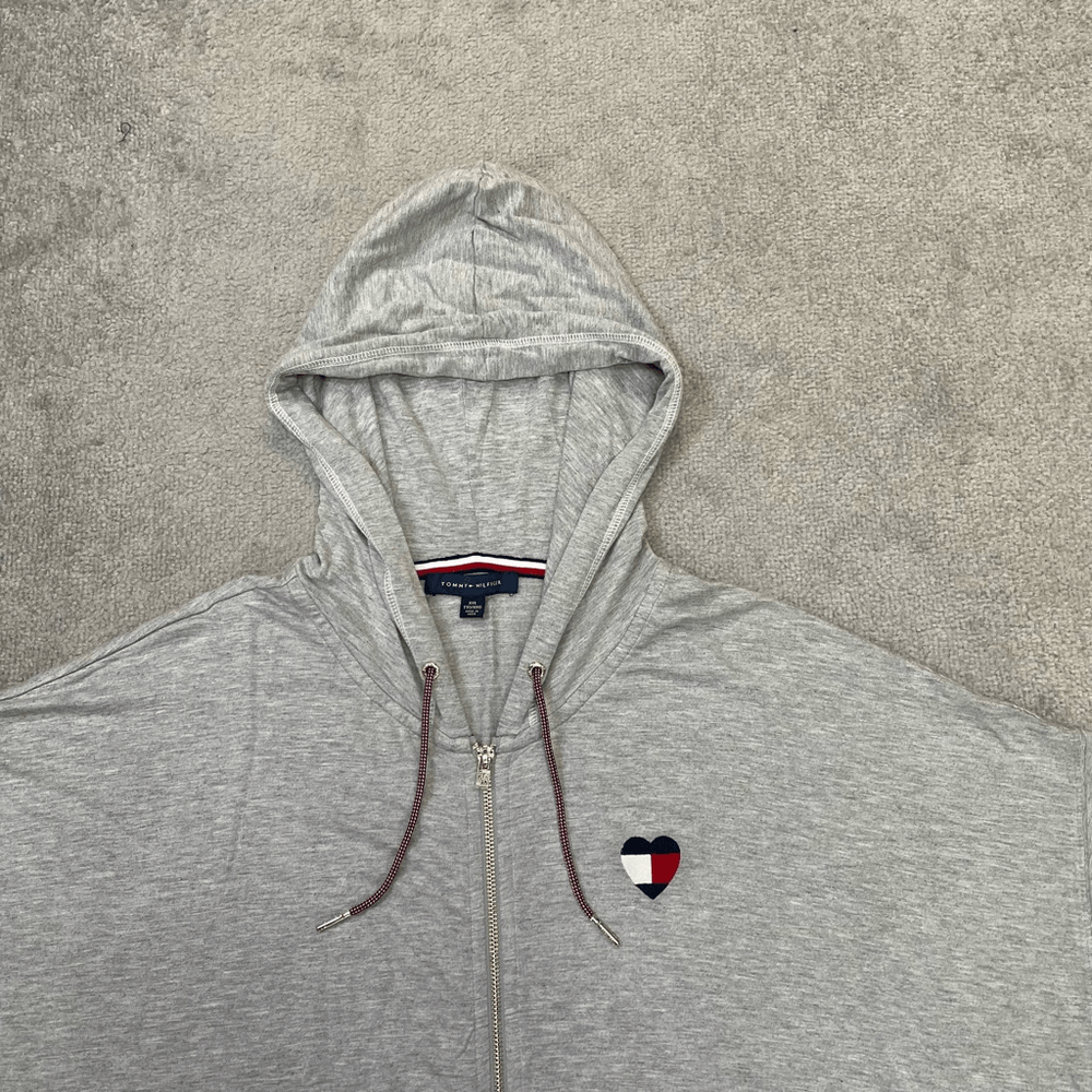 Tommy Hilfiger Womens Full Zip Embroidered Heart Logo Hoodie Gray XXL NWOT Brand: Tommy Hilfiger Department: Women's Size: XXL Color: Gray Style: Hoodie Fit: Classic Closure: Zip Neckline: Hooded Sleeve Type: Classic Sleeve Sleeve Length: Long Sleeve Pattern: Heather Condition: New Without Tags Features: - Front full zipper closure - Attached hood with adjustable drawstring - Grommet eyelets - Embroidered heart logo patch on the chest - Flat lock seams - Heathered gray fabric Approximate Measurements: 29” Pit to Pit 27 3/4” Length Ships Fast Comes from a smoke free home