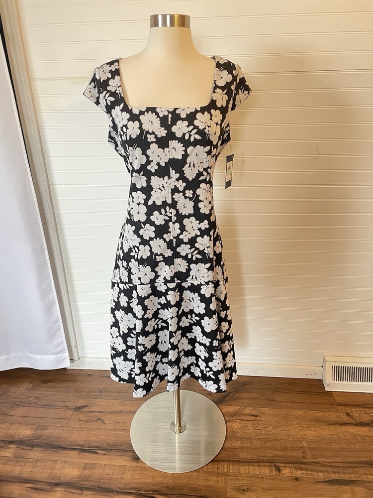 Tommy Hilfiger Floral Knit Square Neck Retro Flare Dress, Size 16, New With Tags, Excellent Condition, Gorgeous dress, Flared Out Hemline, with a classic retro touch, Originally $134!