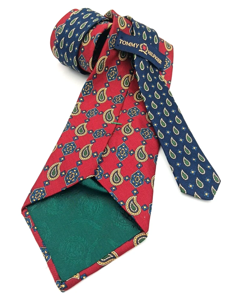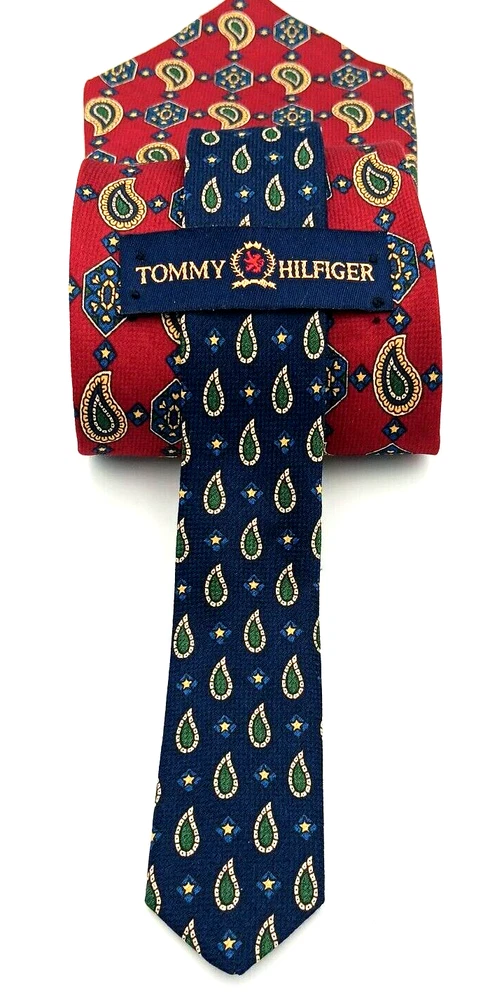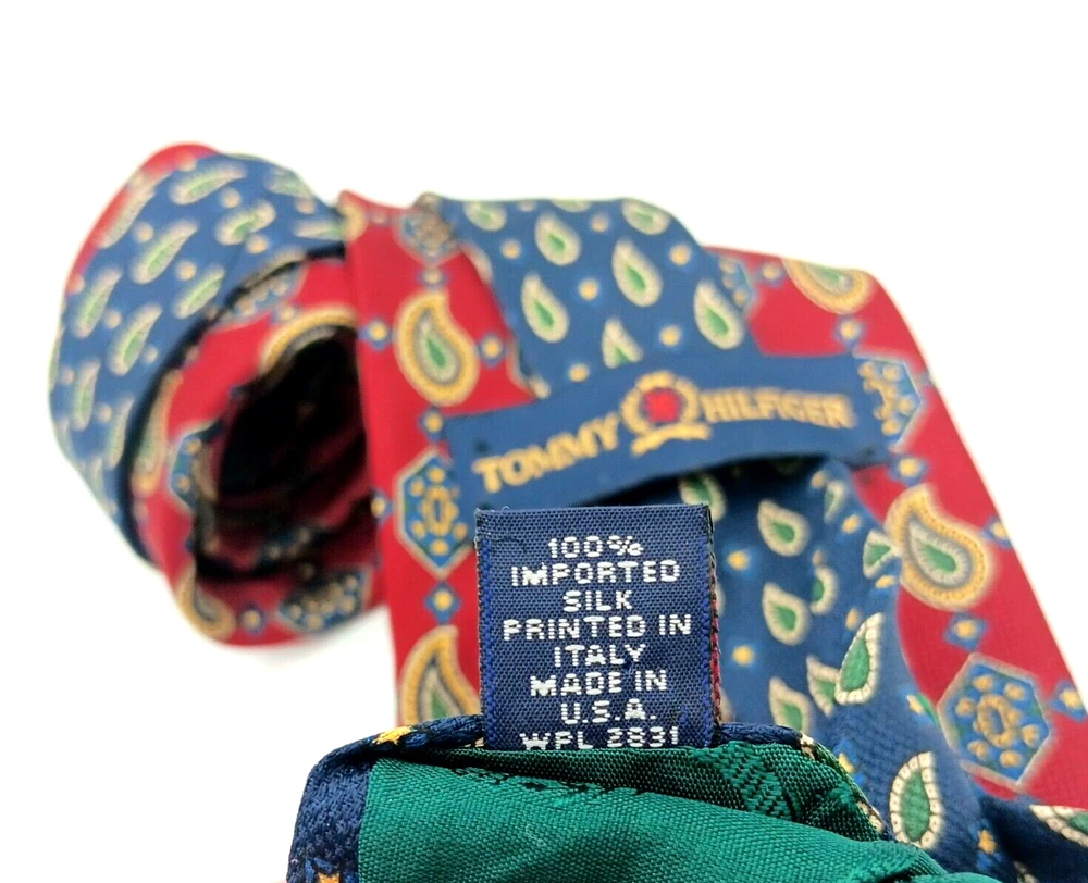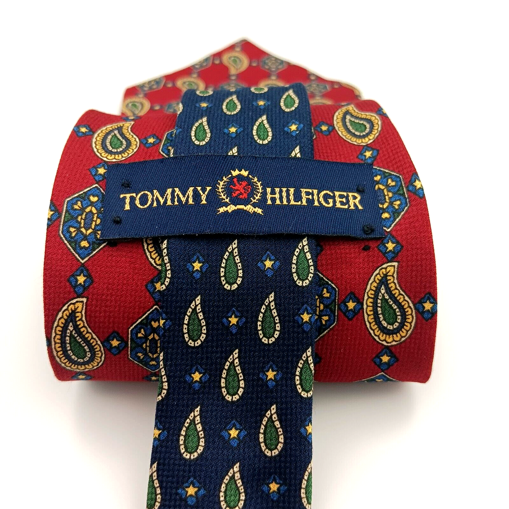 Style: Designer Theme: American Item Length: Classic (57"-60") Type: Tie Character: None Item Width: Classic Country/Region of Manufacture: United States Brand: Tommy Hilfiger Vintage: Yes Patterns: Foulard Geometric Material: Silk Department: Men Personalize: No Features: Adjustable Number of Pieces: 1 piece Pattern: Geometric Attachment Type: Tied Color: Red and Blue Multicolor Size: One Size Handmade: Yes Accents: Logo Fabric Type: Woven