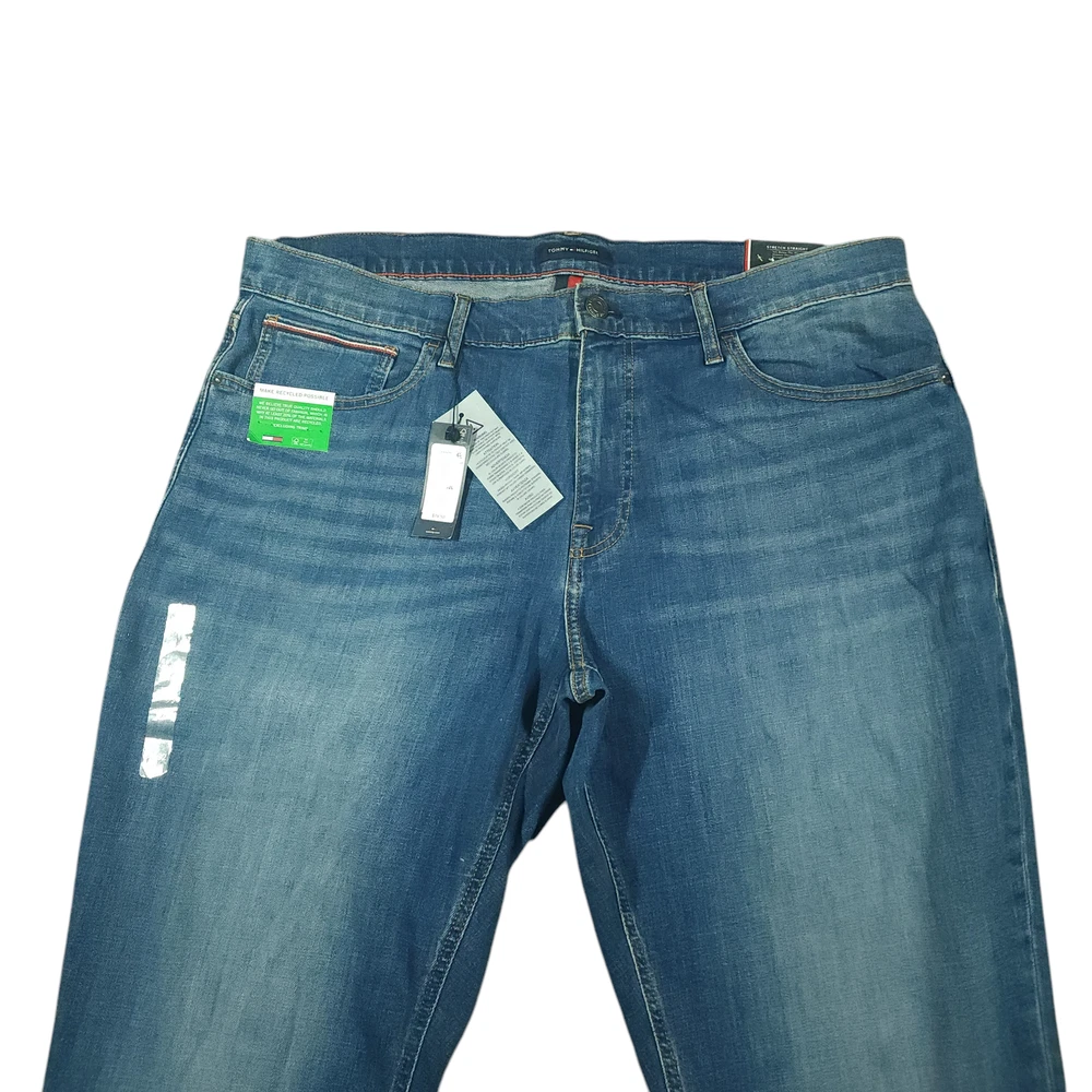 Tommy Hilfiger Jeans 36x32 Mens Stretch Straight Baggy Mid Rise Recycled Cotton Rinse Wash Whiskering These classic americana 5 pocket jeans will sit at or slightly below your waist and provide a baggy straight fit, tapered leg look. They have the rinse/dark wash and visible whiskering. They are made from reprocessed/recycled cotton as one of the components. Get them before they are gone!! Product Details Waist 38 inches Inseam 29 inches Rise 11.5 inches Leg 17 inches Thigh/Hip 48 inches Knee 19 inches Material 79% cotton/20% reprocessed cotton/1% elastane Imported Bangladesh I ship the same day if the order is received by 1 PM EST or ship the next day utilizing recycled, sustainable packaging and materials. I do not ship to Belarus, Russia, Mexico, Vietnam, and Germany due to national shipping requirements/restrictions. I offer automatic combined shipping and also I offer bundle and shipping discounts for 2 or more items purchased in my store. Buyer is responsible for the payment of all import fees if international sale. I accept returns if permitted by the platform that the item was purchased on within 30 days of delivery date. Items must be returned in the condition received. International returns are at the buyer's expense. All clothing items have been steam cleaned and/or washed. If you have questions, I will respond as quickly as I can.